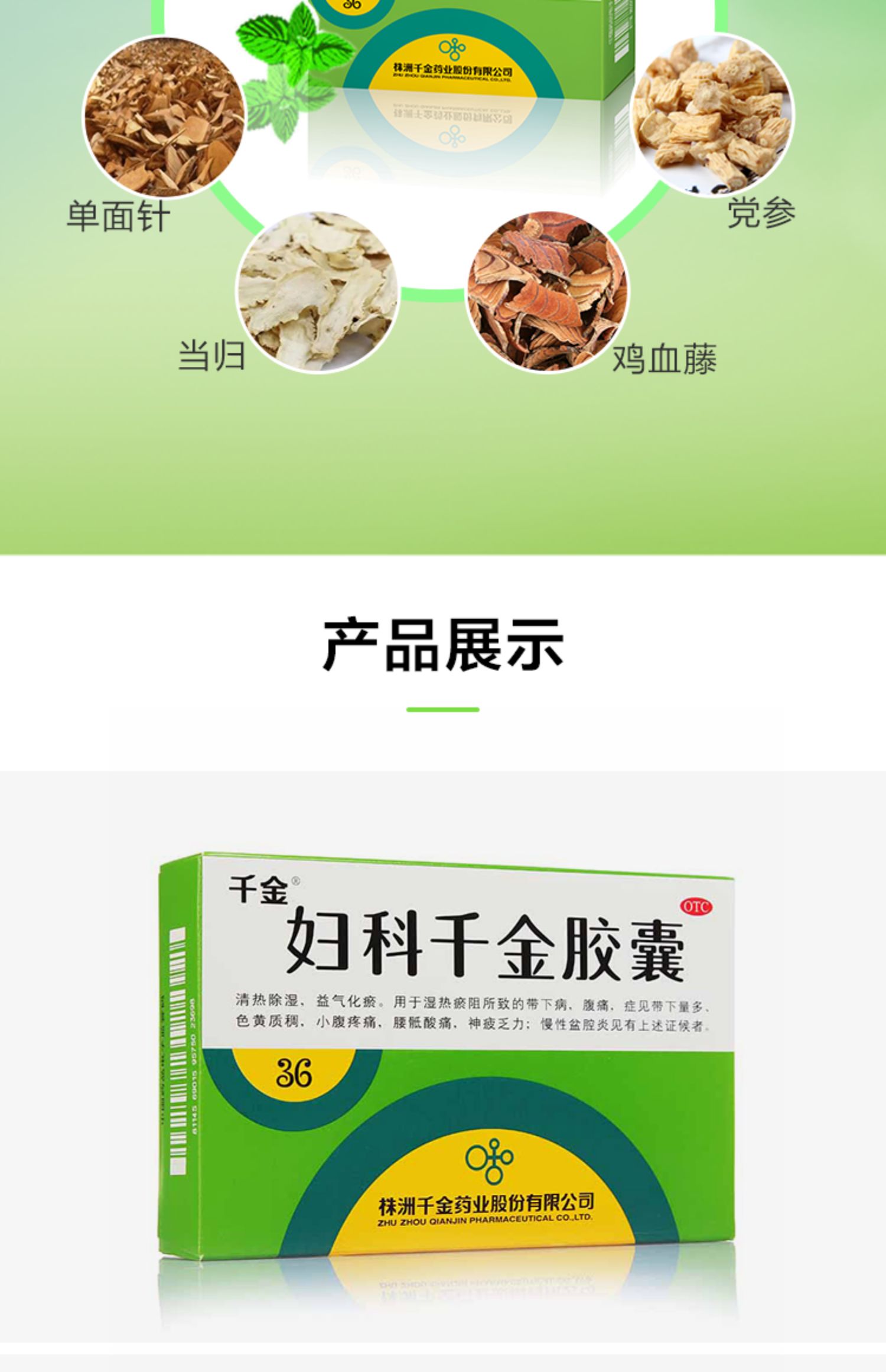 千金妇科千金胶囊36粒除湿小腹疼痛白带异常慢性盆腔炎外阴瘙痒