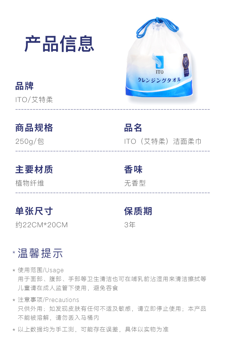 进口ITO纯棉一次性洗脸巾干湿两用250g/包美容巾