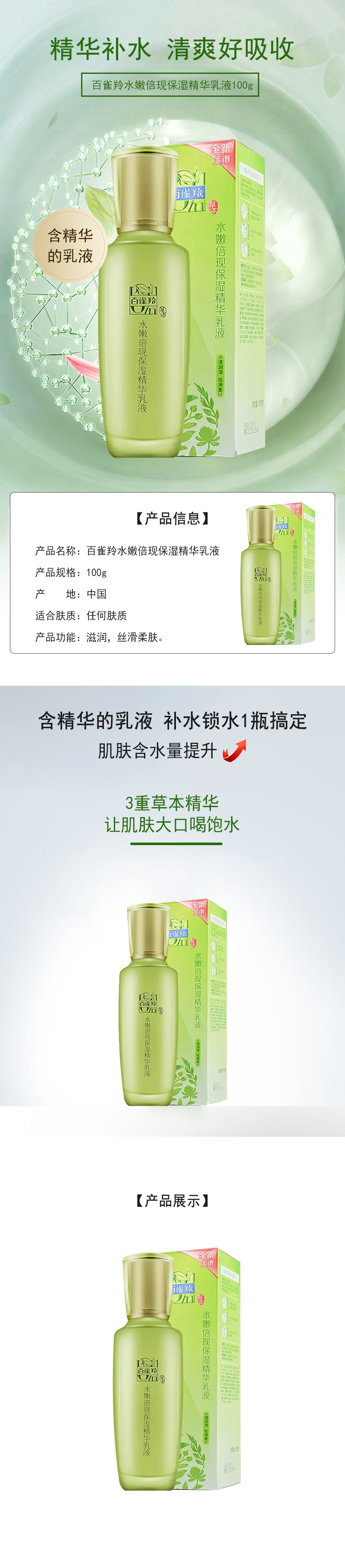 百雀羚水嫩倍现保湿精华乳液100g(30149588)【30149588】