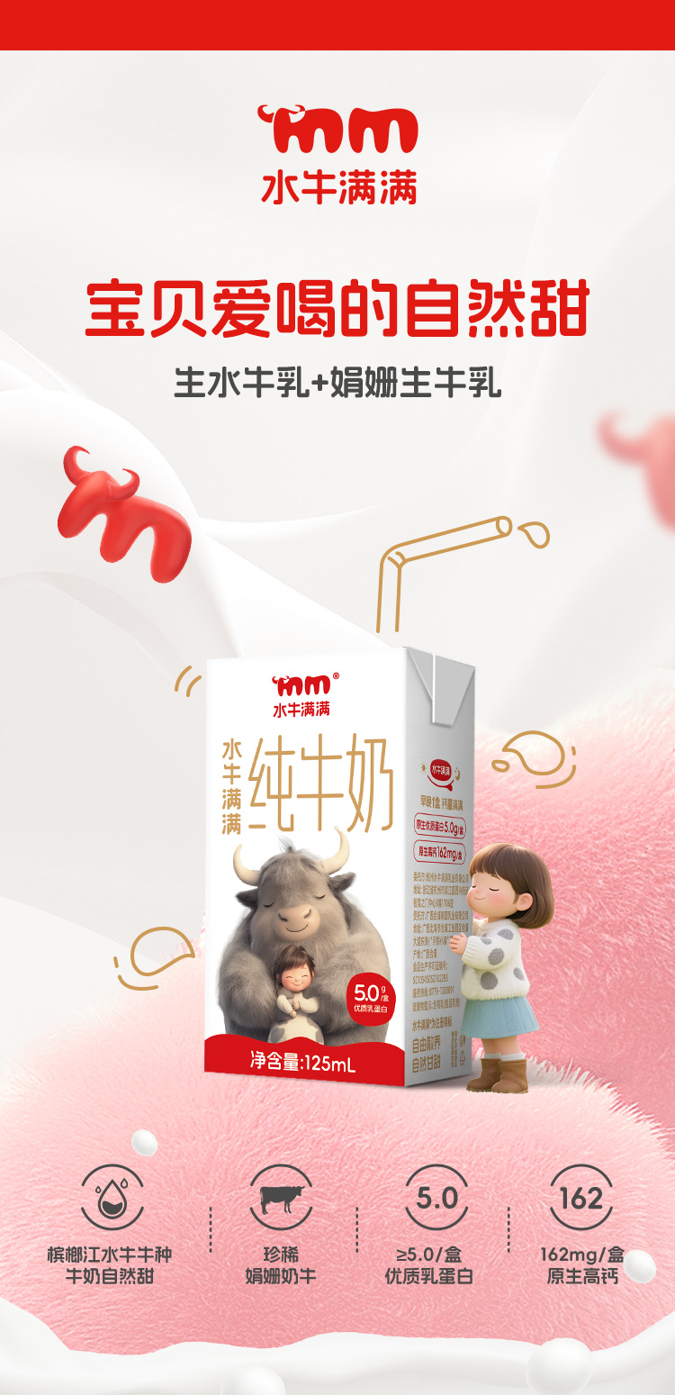 水牛满满5.0水牛纯牛奶 | 口口丝滑,自然甘甜,唇齿留香,男女老少都适合
