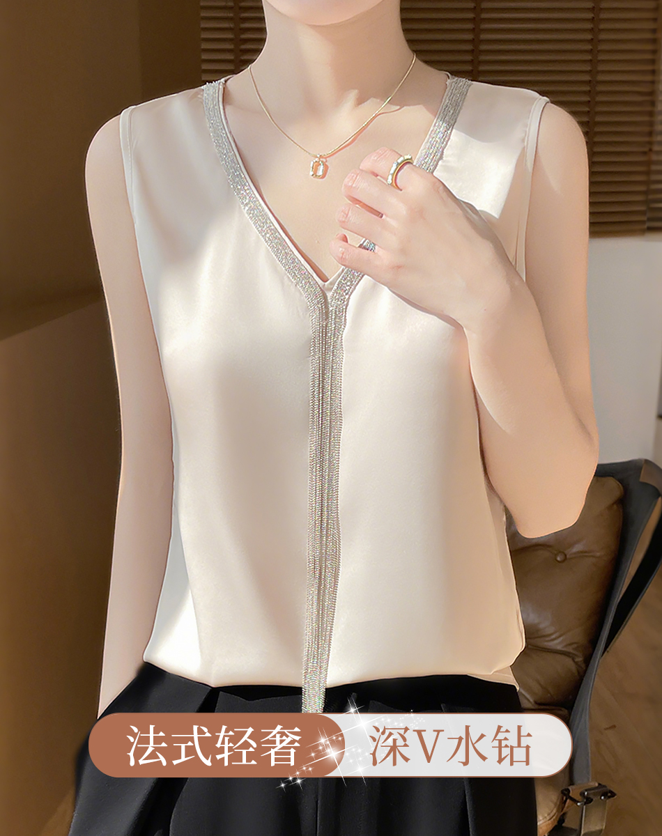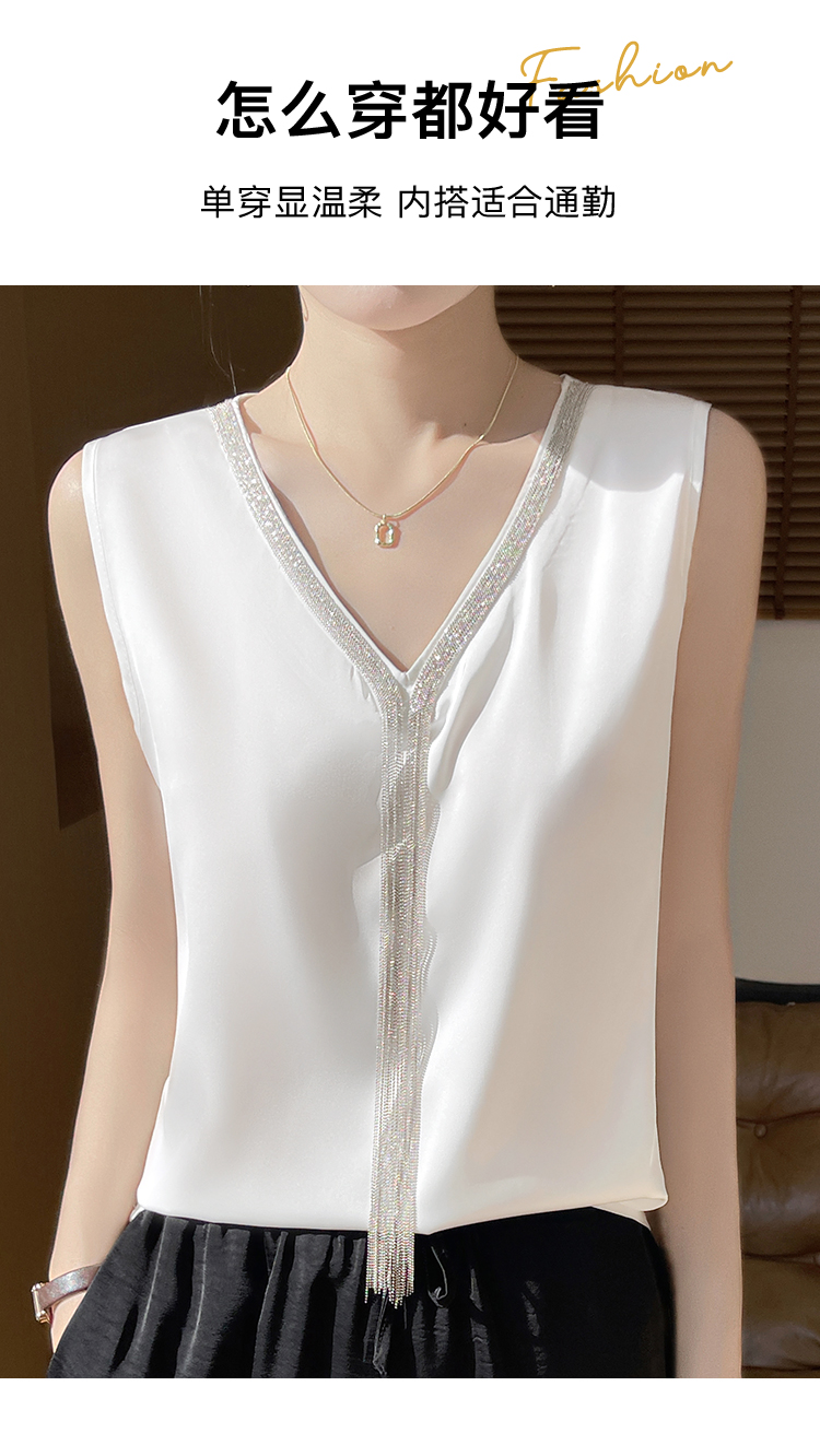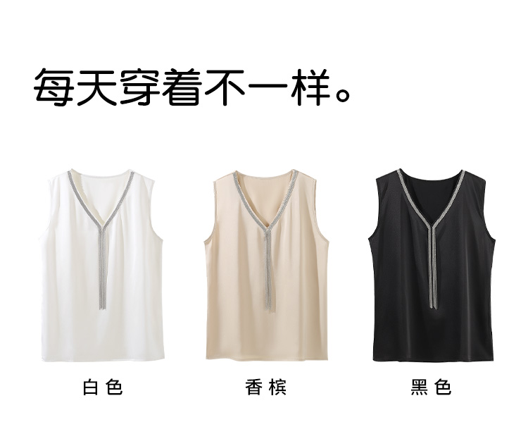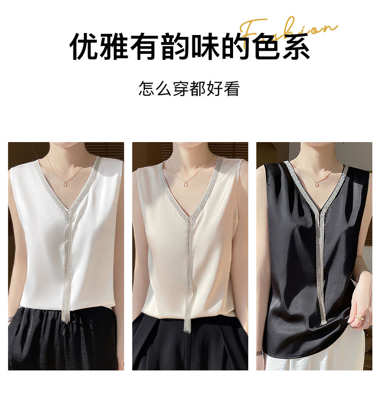 夏季薄款仿真丝高级感西装内搭轻奢缎面V领水钻背心女宽松显瘦A68流苏背心