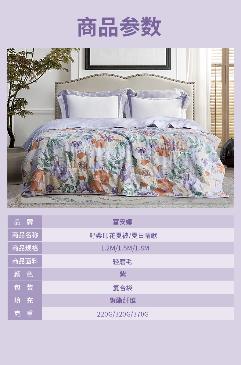 【6F】富安娜舒柔印花夏被/夏日晴歌,标准,紫
