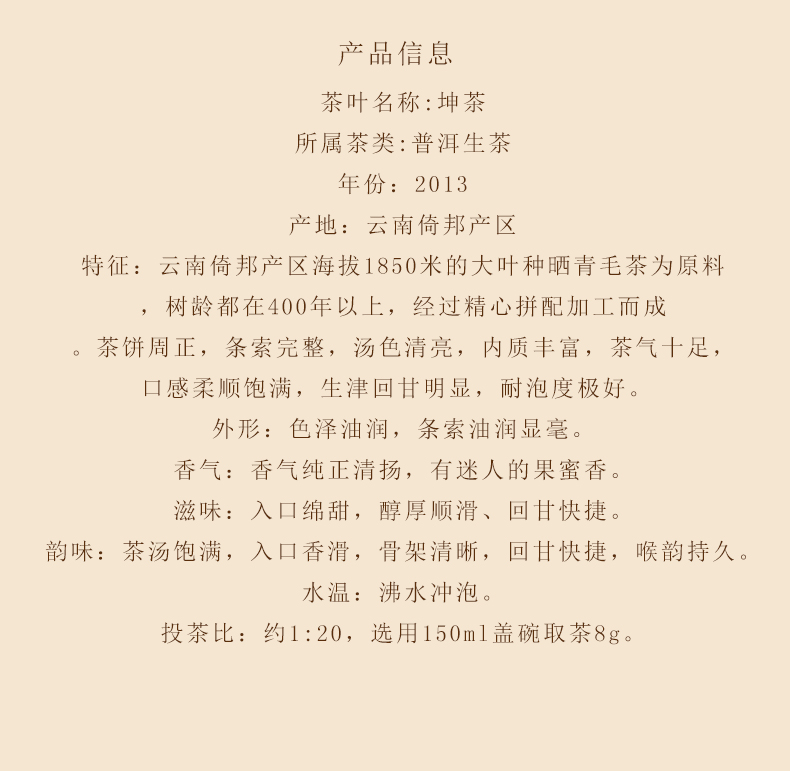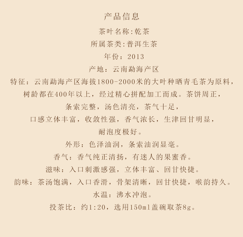 2013年乾茶、坤茶(普洱生茶)400克/饼