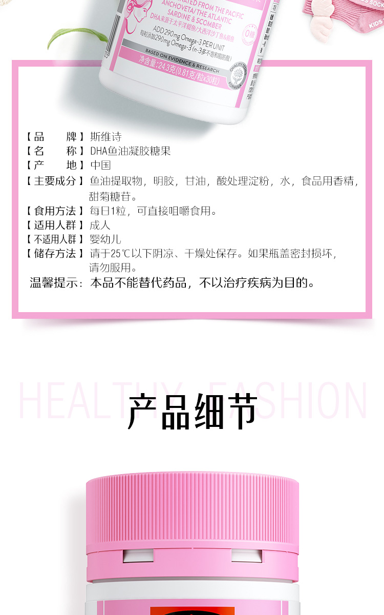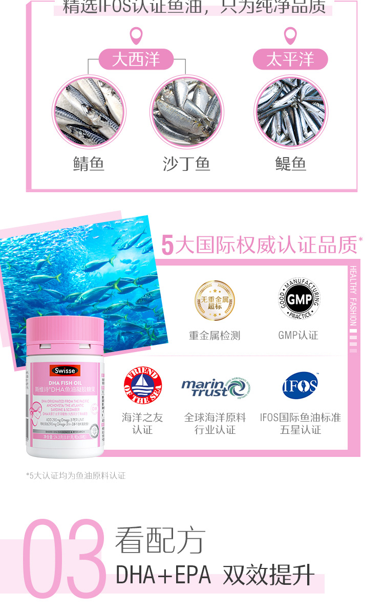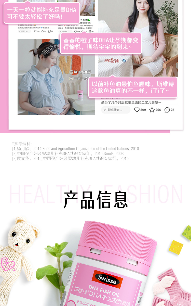 【中文版】Swisse/斯维诗 孕产妇DHA鱼油凝胶糖果(30粒)
