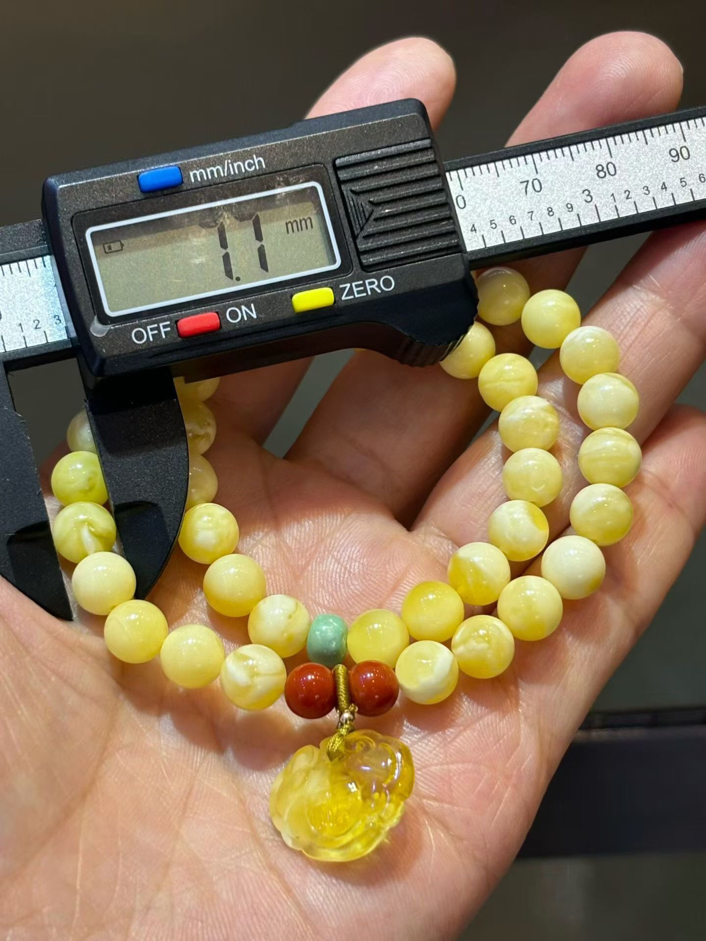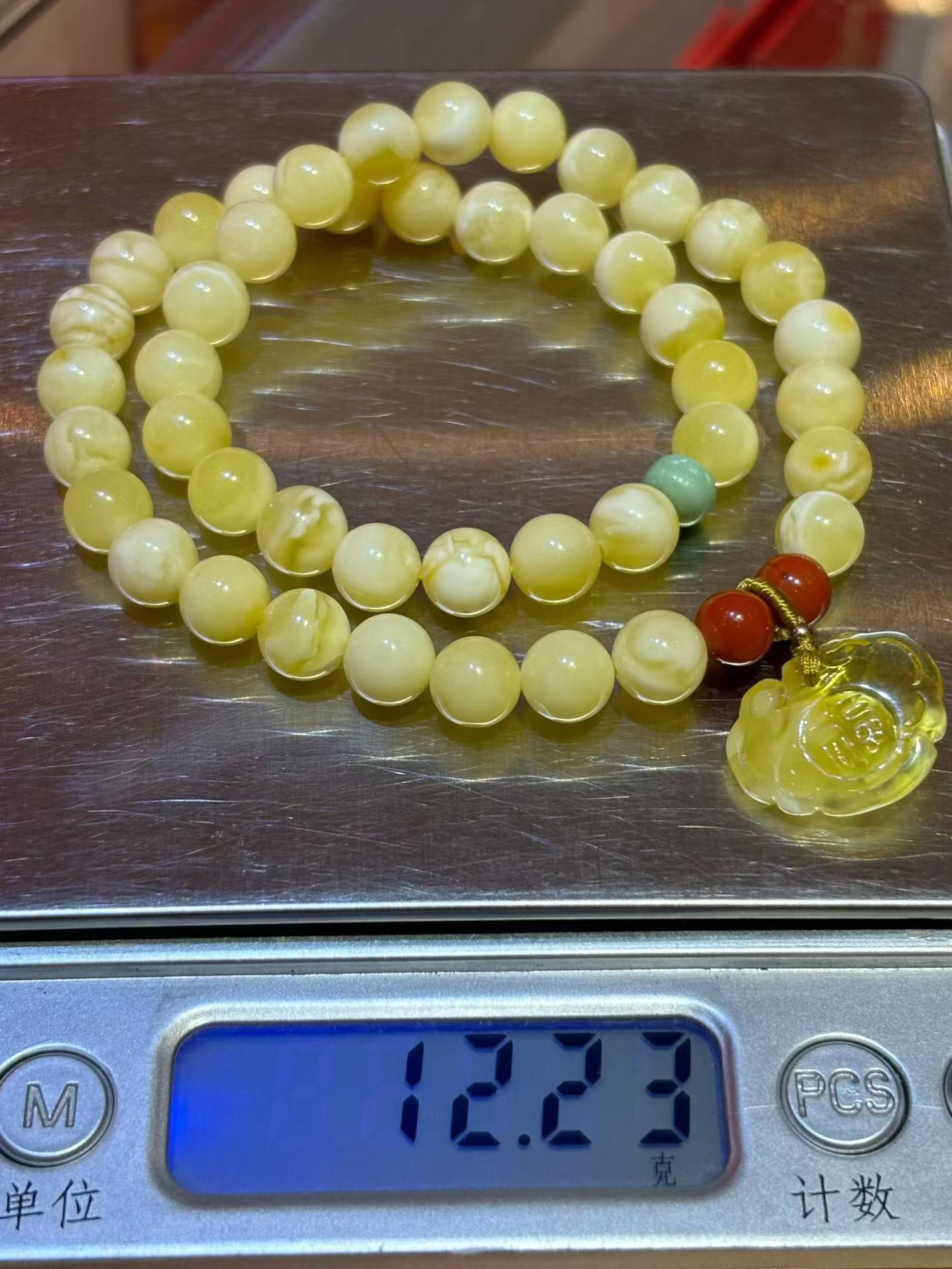 【青山特惠】7.7mm原矿俄料白花蜡蜜蜡2圈手链,搭配原矿绿松,南红,蜜蜡小如意,12.23g m 53
