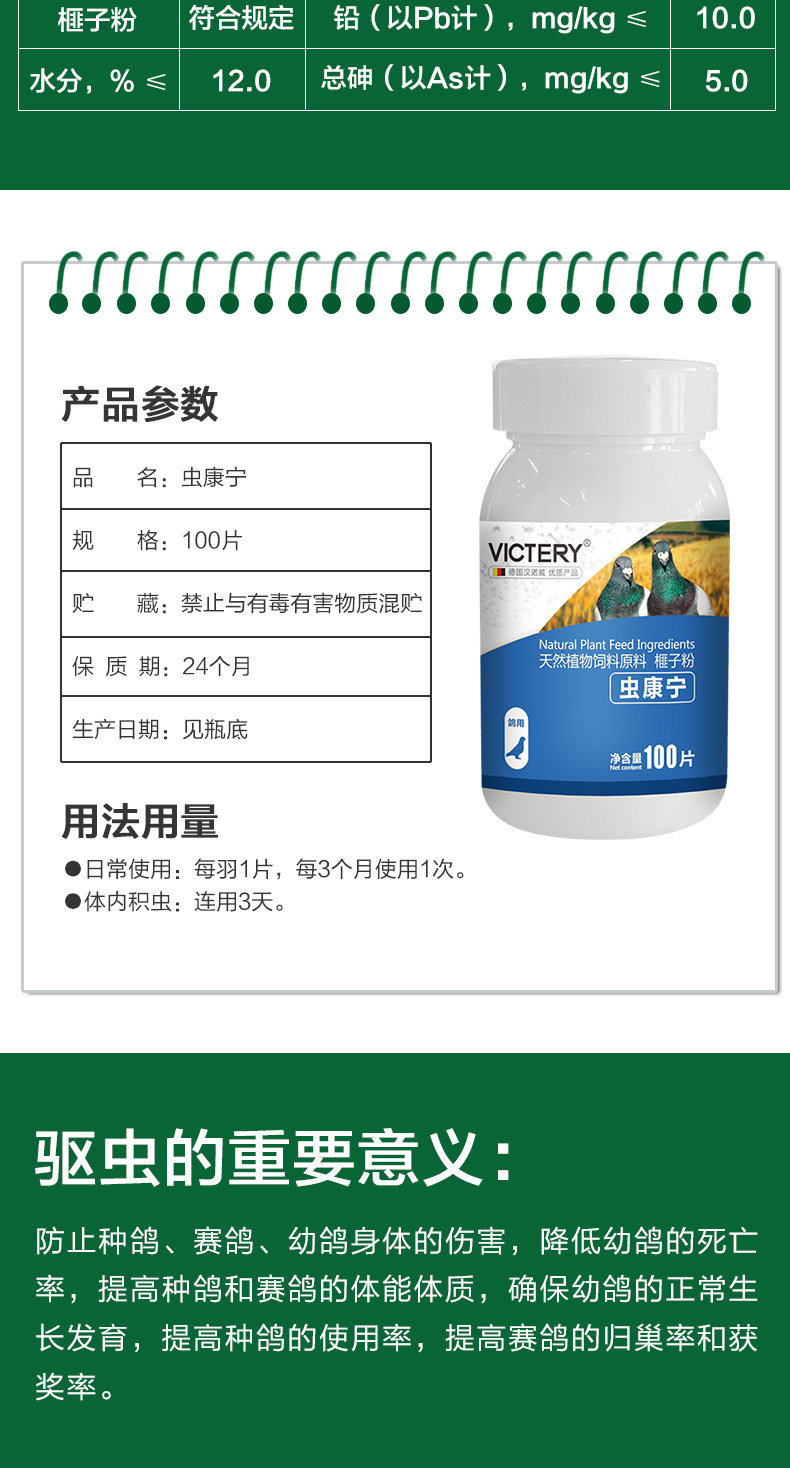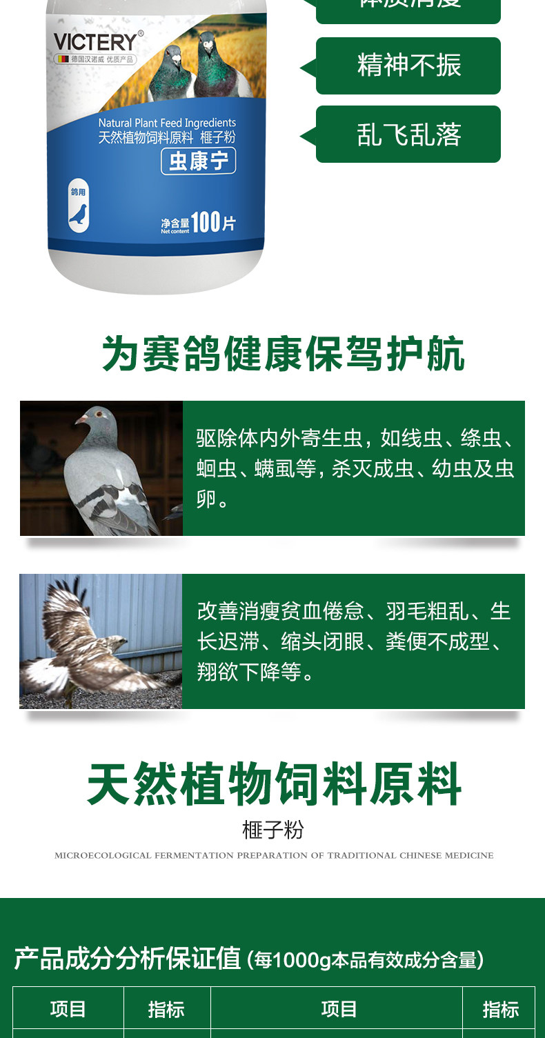 汉诺威【虫康宁片】体内虫,鸽子消瘦