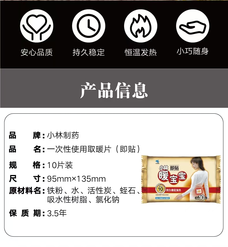 4楼Eubelle欧蓓 小林暖宝宝暖贴发热暖身贴10片 即贴暖脚暖手 吊牌价:36元 活动价:30元