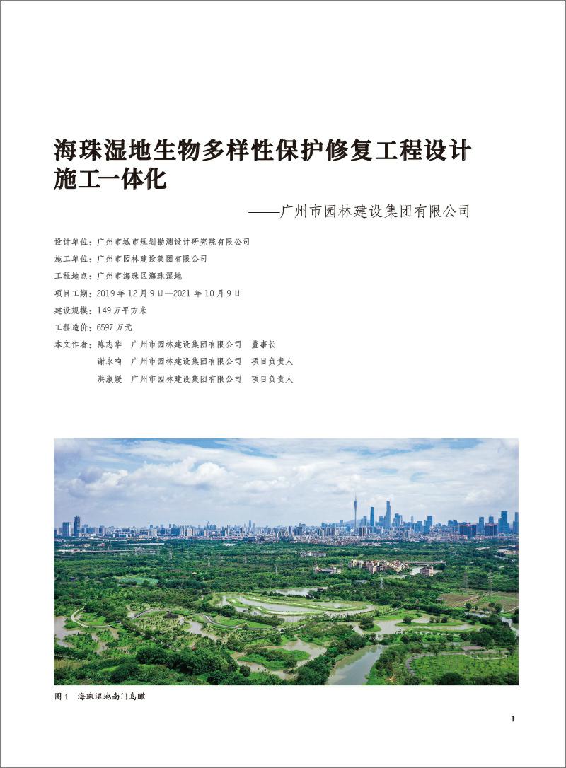 1 海珠湿地生物多样性保护修复工程设计施工一体化 广州市园林建设集团有限公司