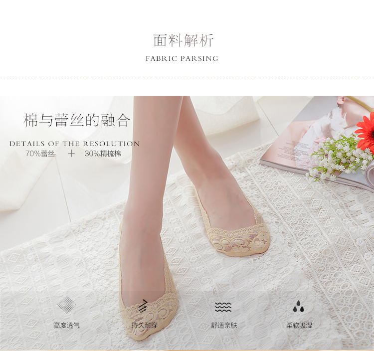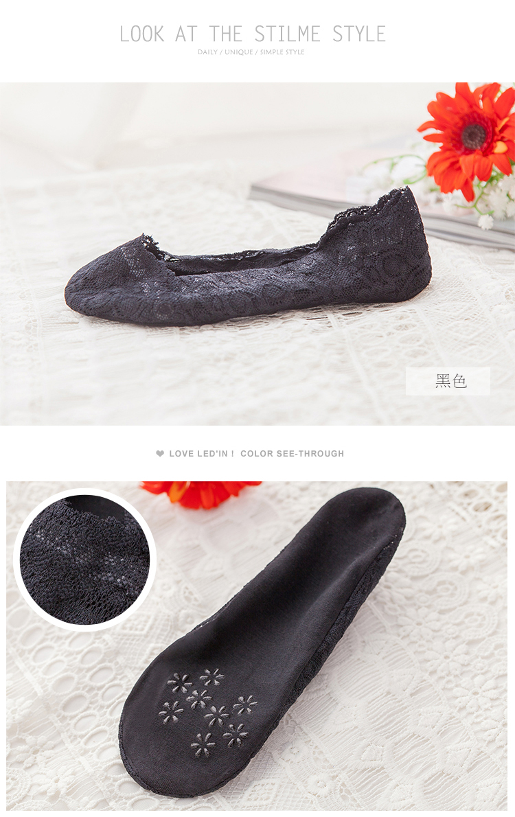 16年新款蕾丝花边隐形船袜,比以往的蕾丝船袜更漂亮,更具甜美风范!
