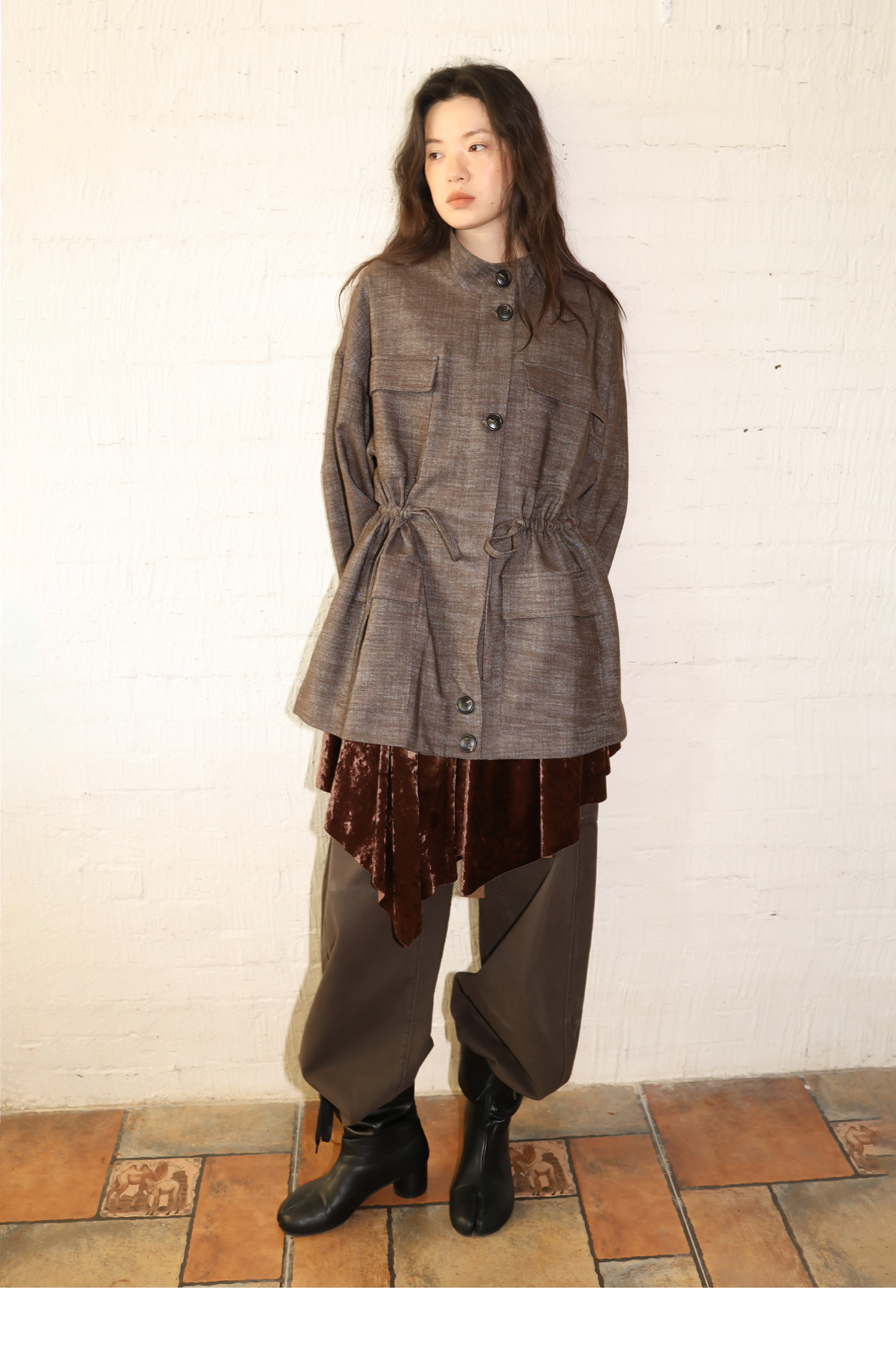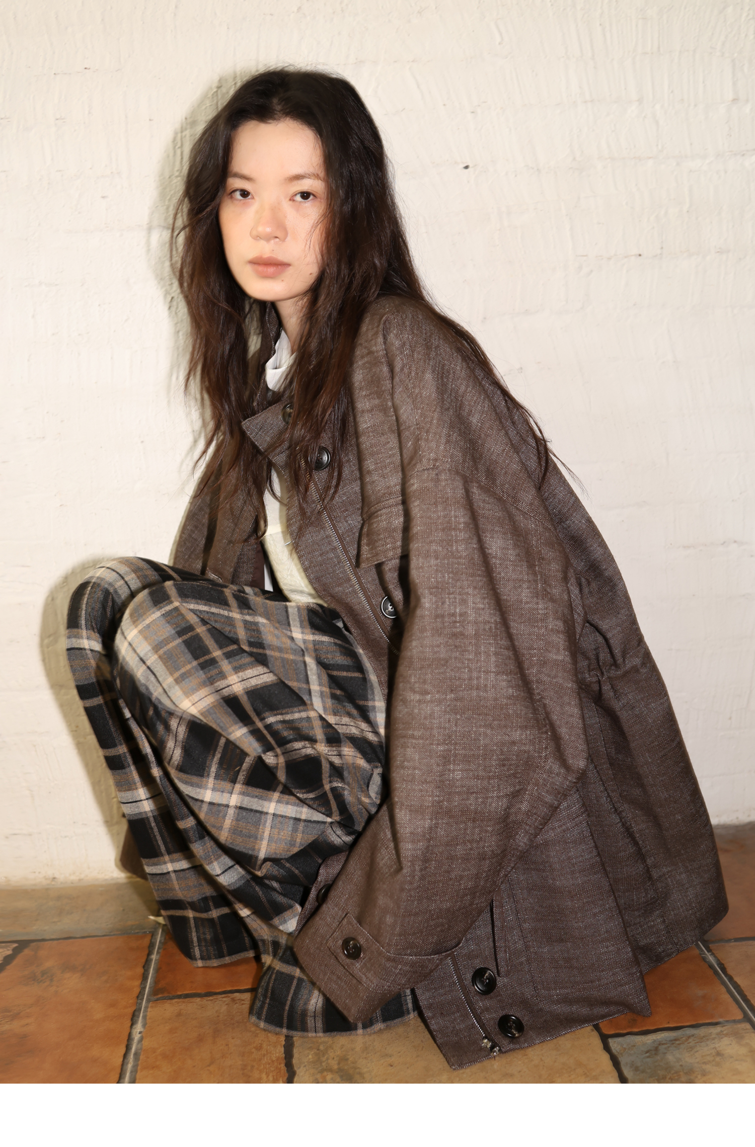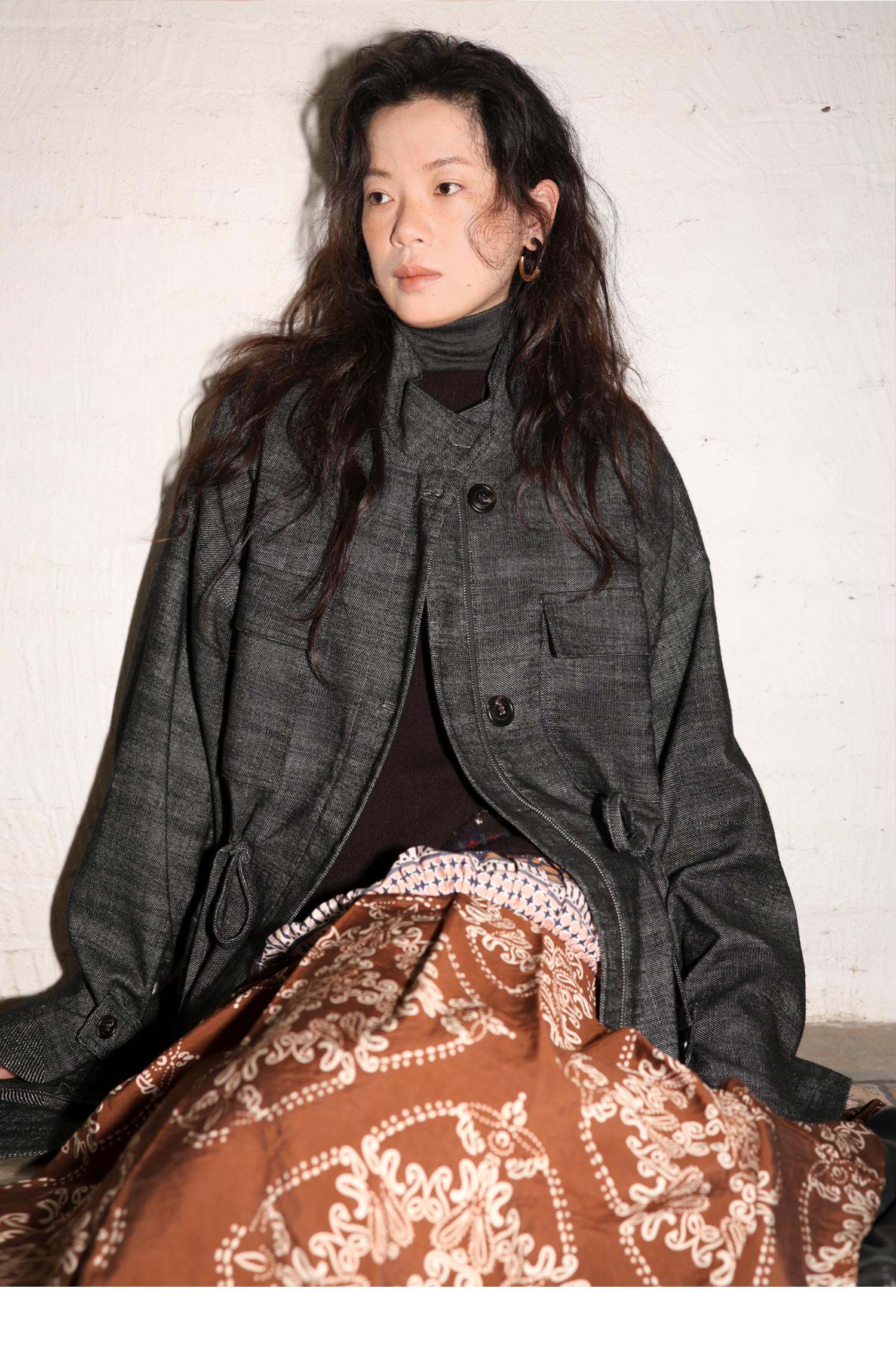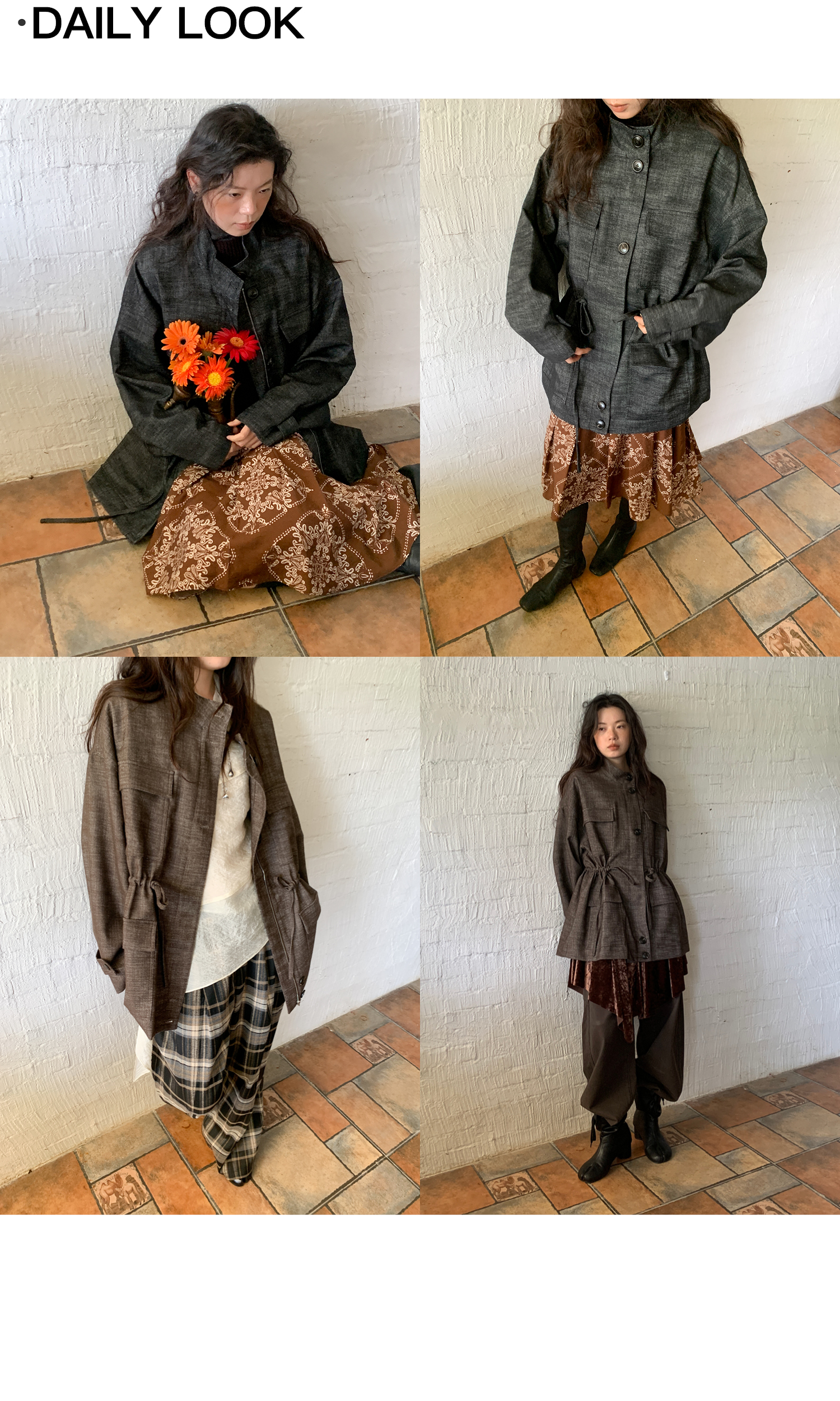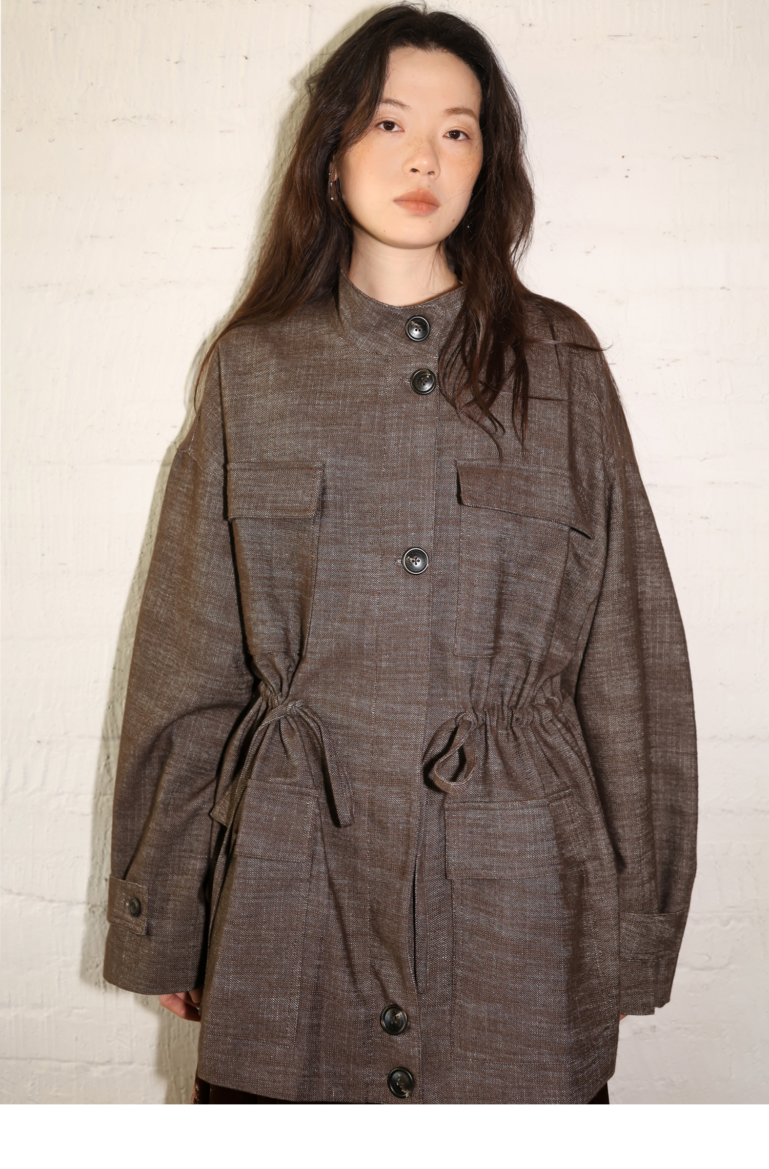 素舶 亚麻棉混纺肌理感立领工装大口袋抽绳短风衣夹克外套