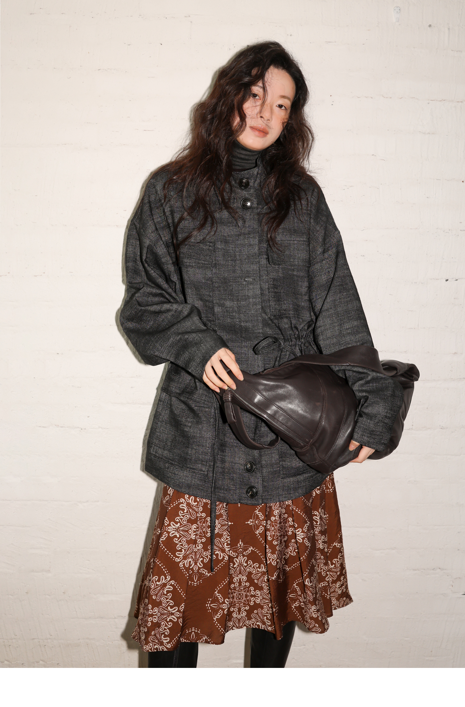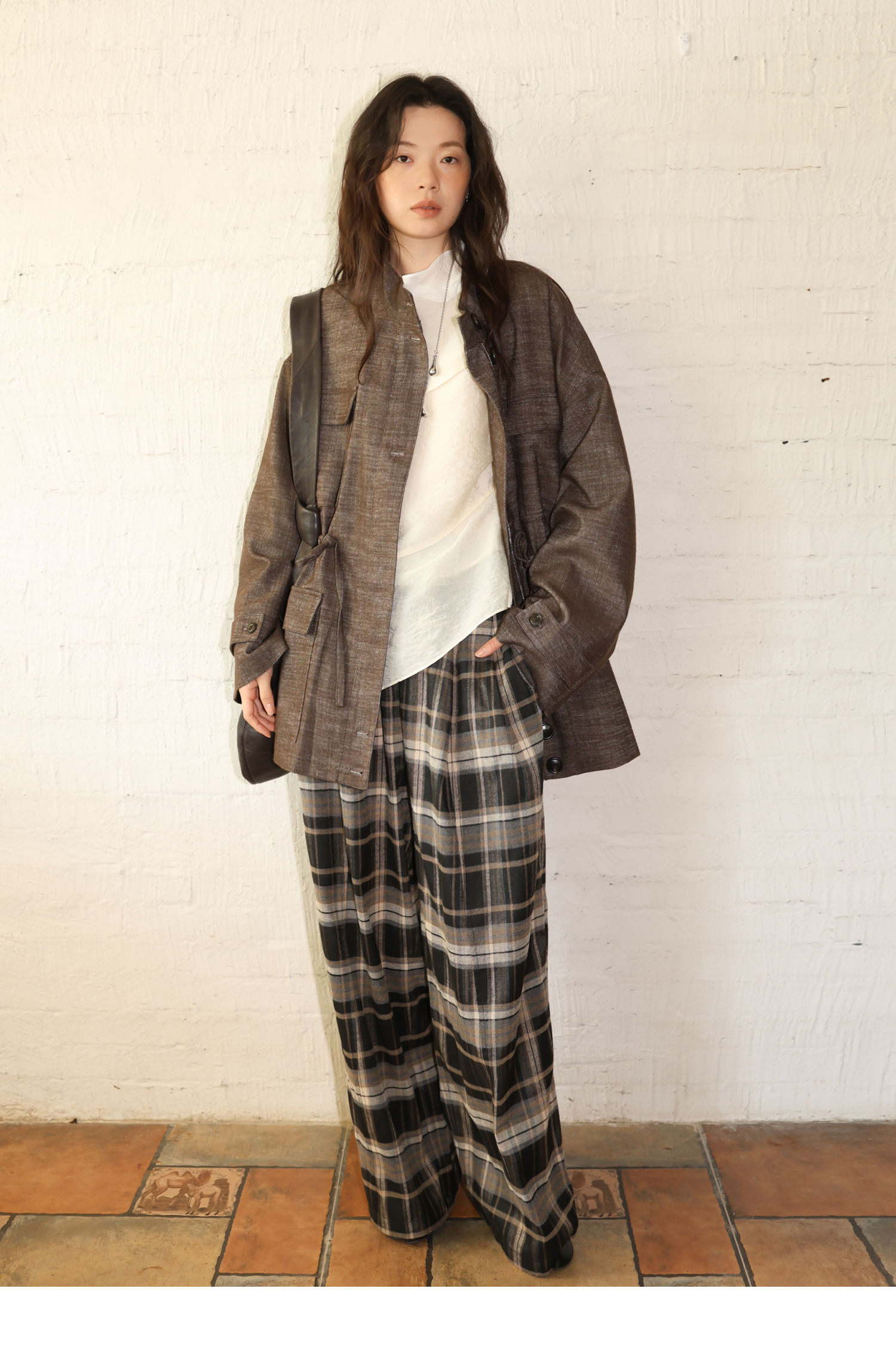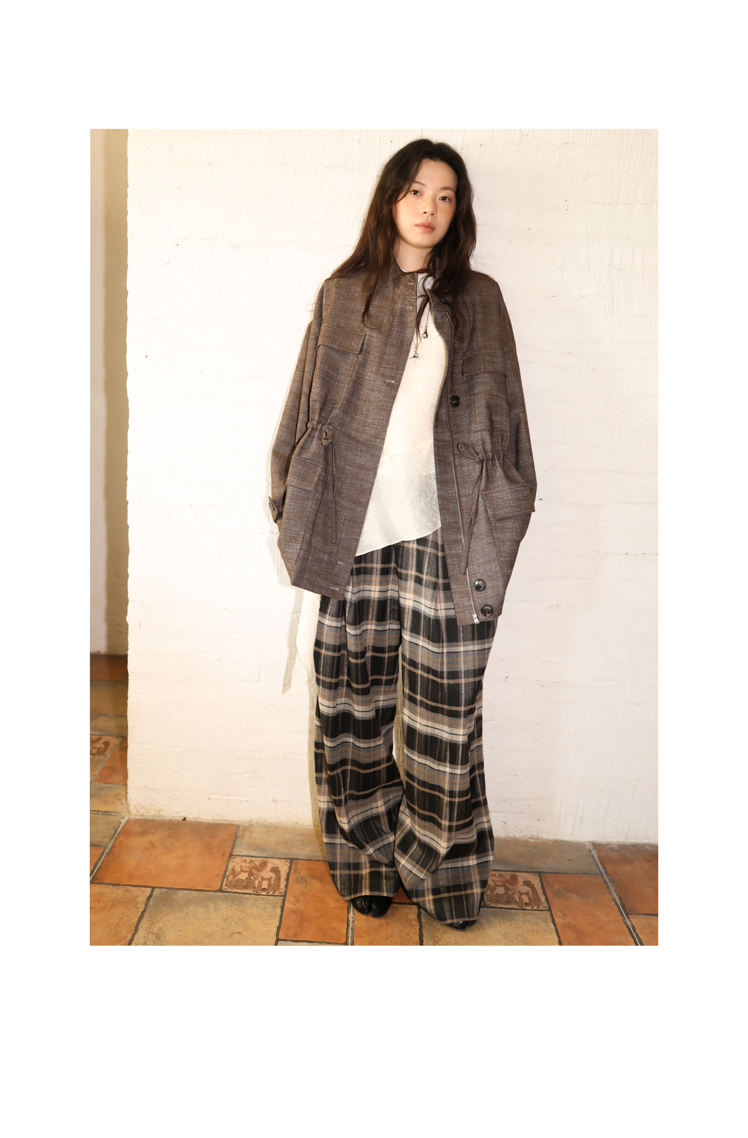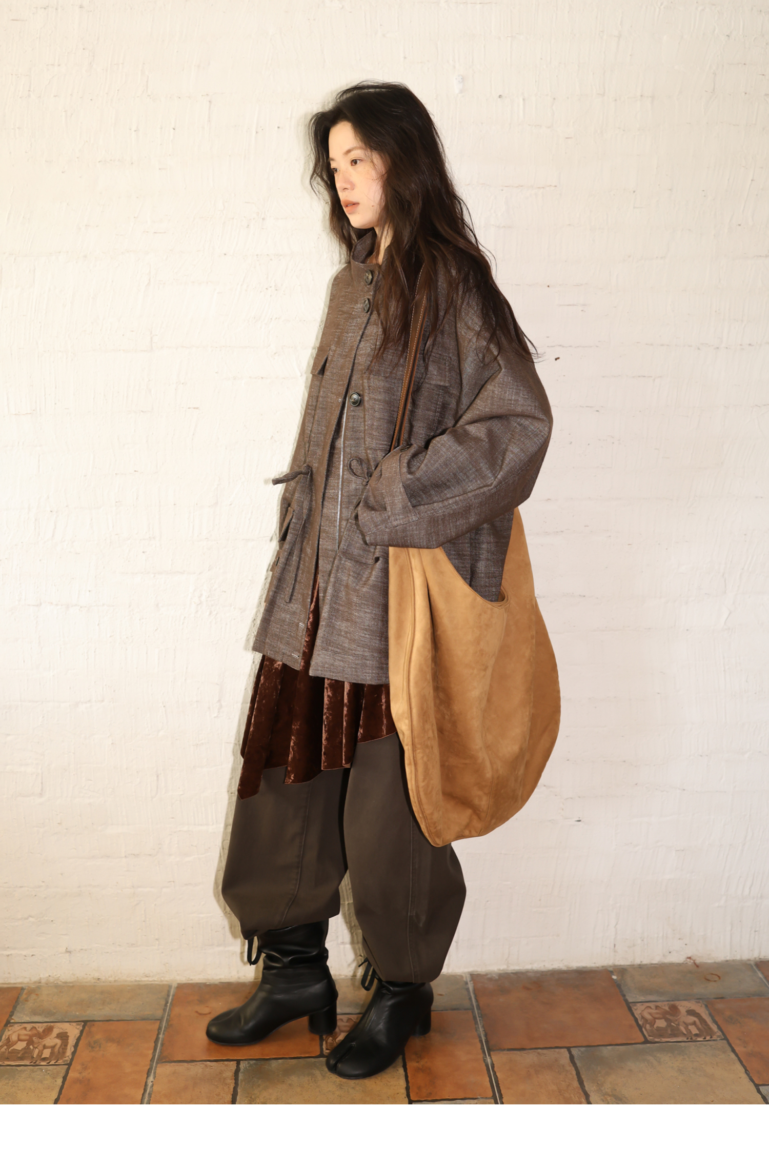 素舶 亚麻棉混纺肌理感立领工装大口袋抽绳短风衣夹克外套