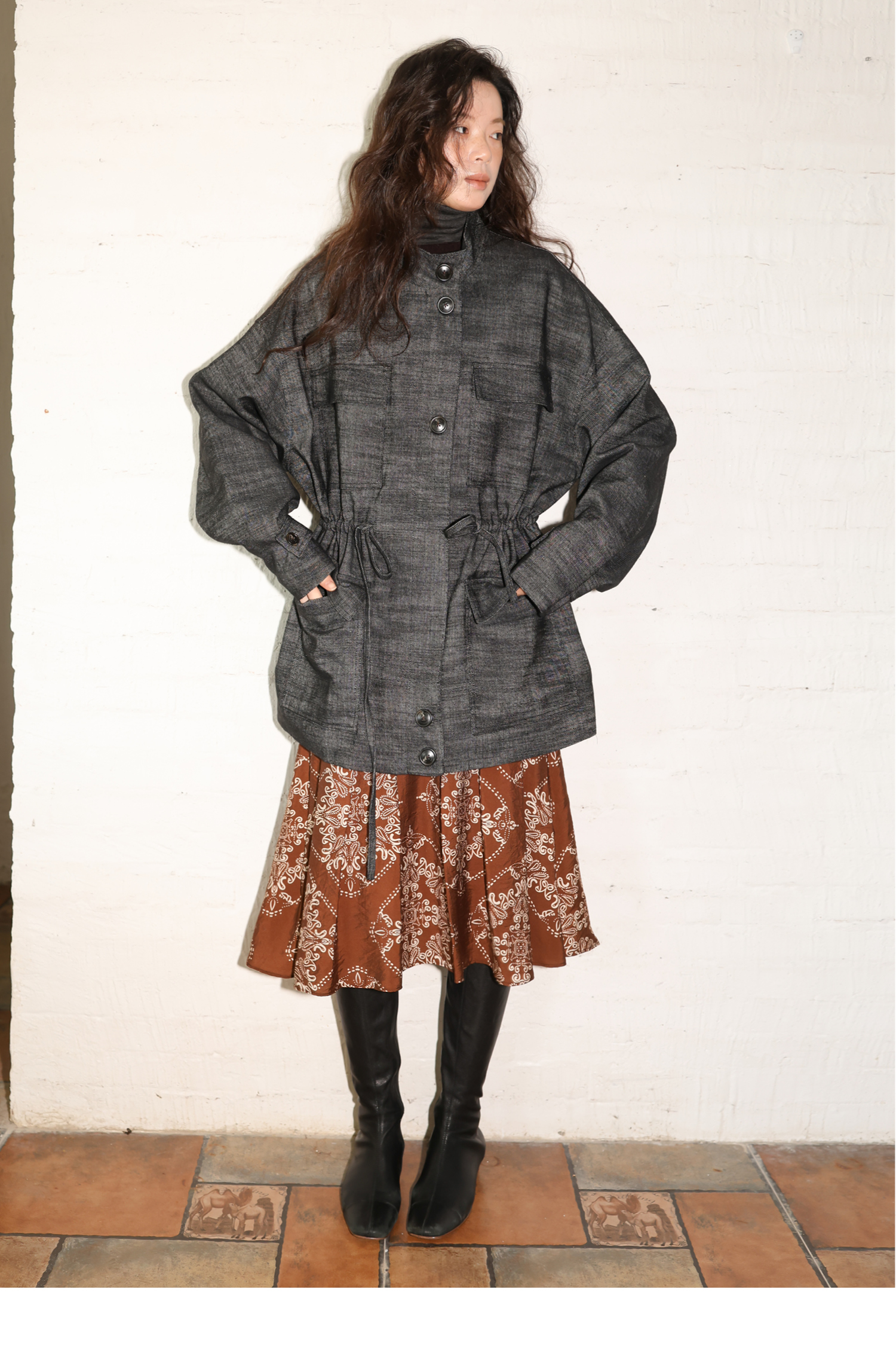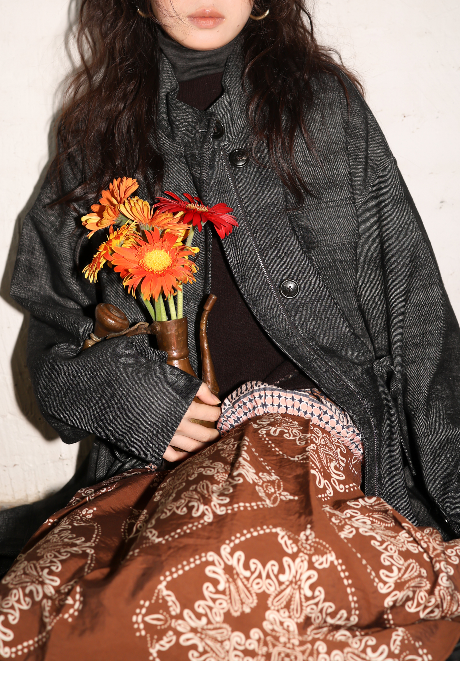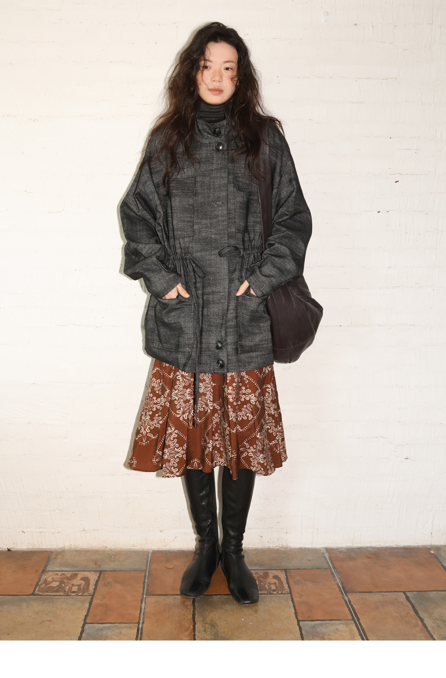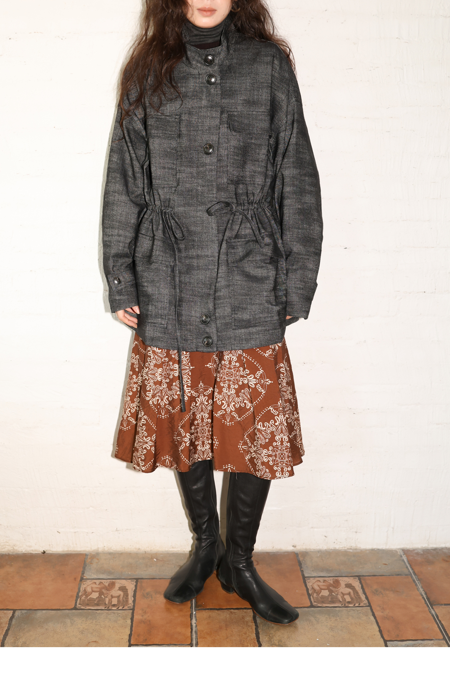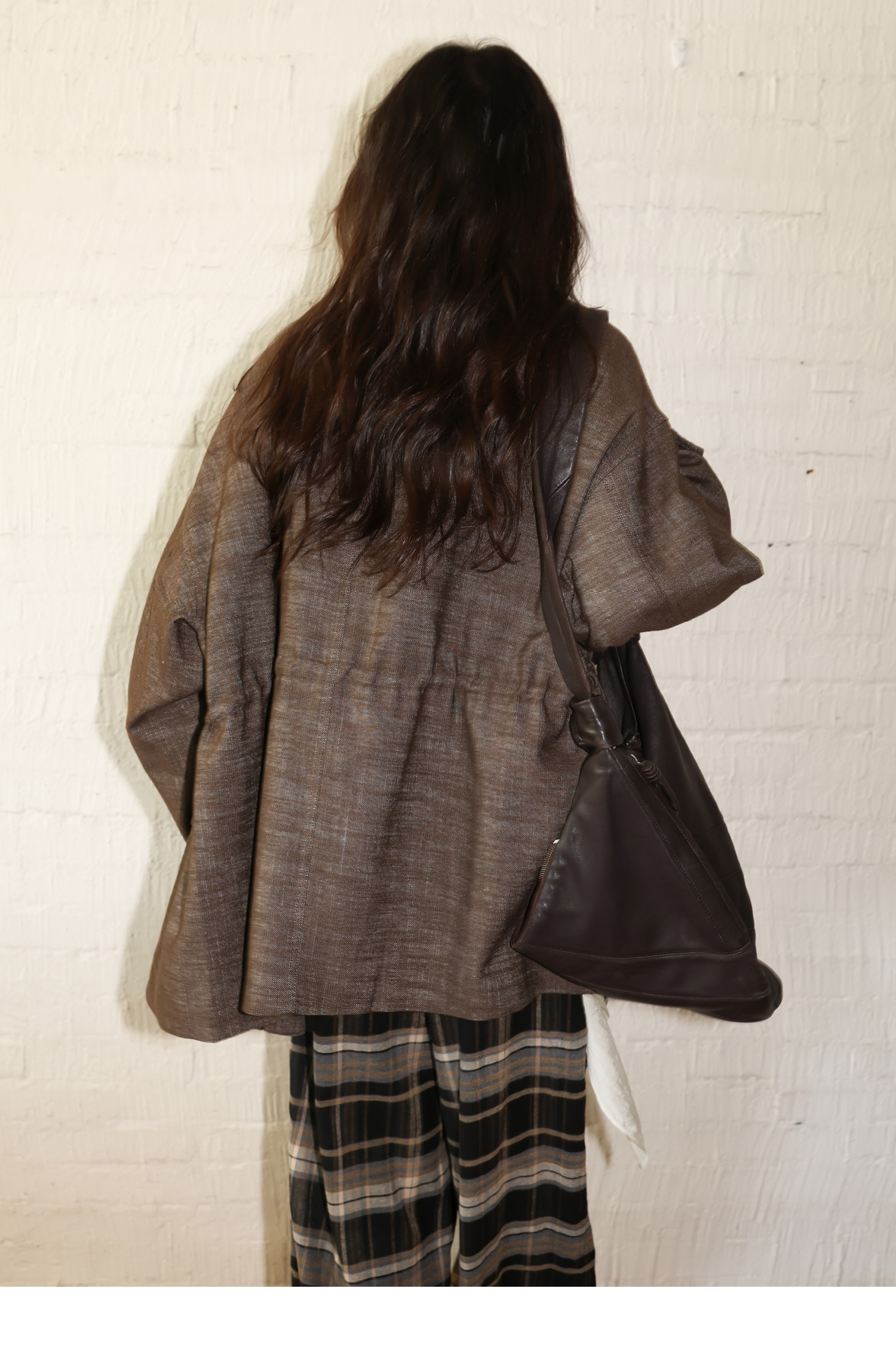素舶 亚麻棉混纺肌理感立领工装大口袋抽绳短风衣夹克外套