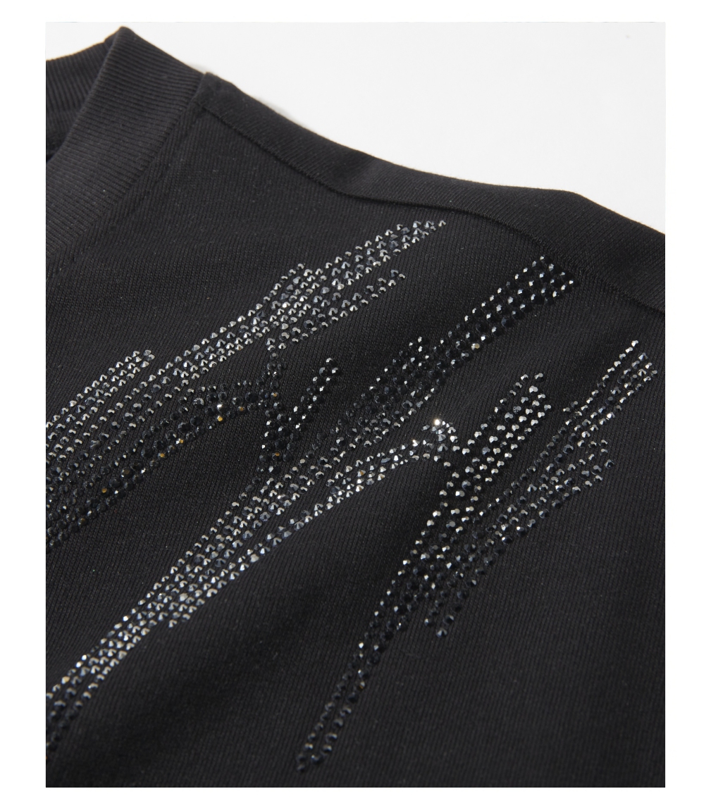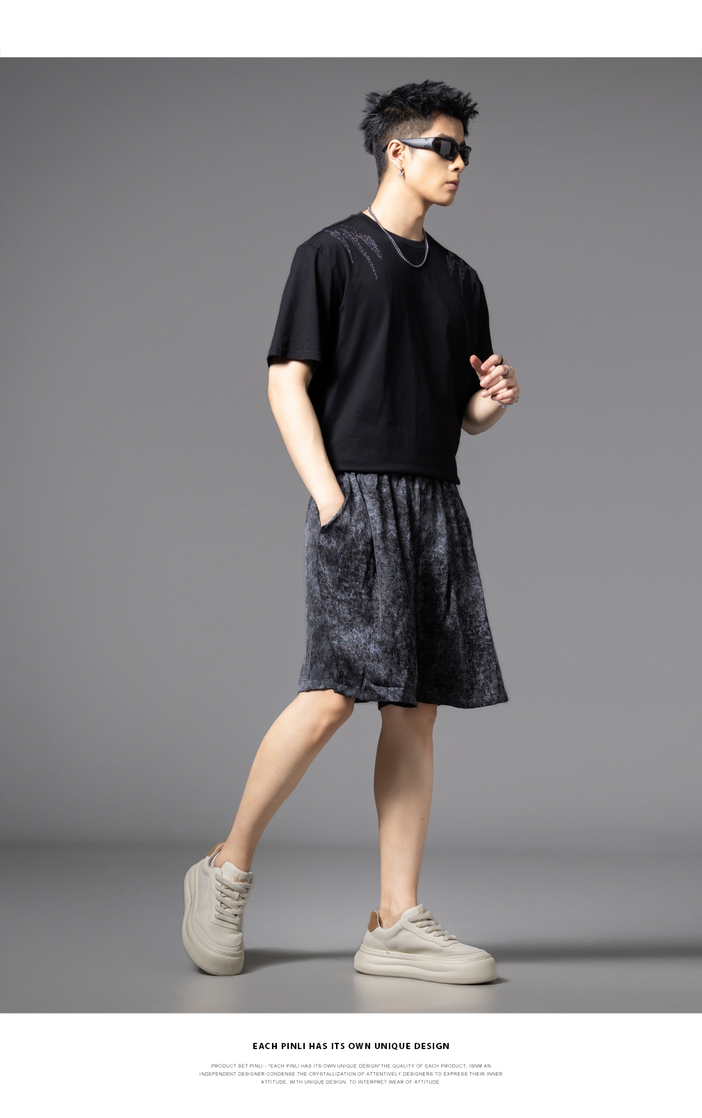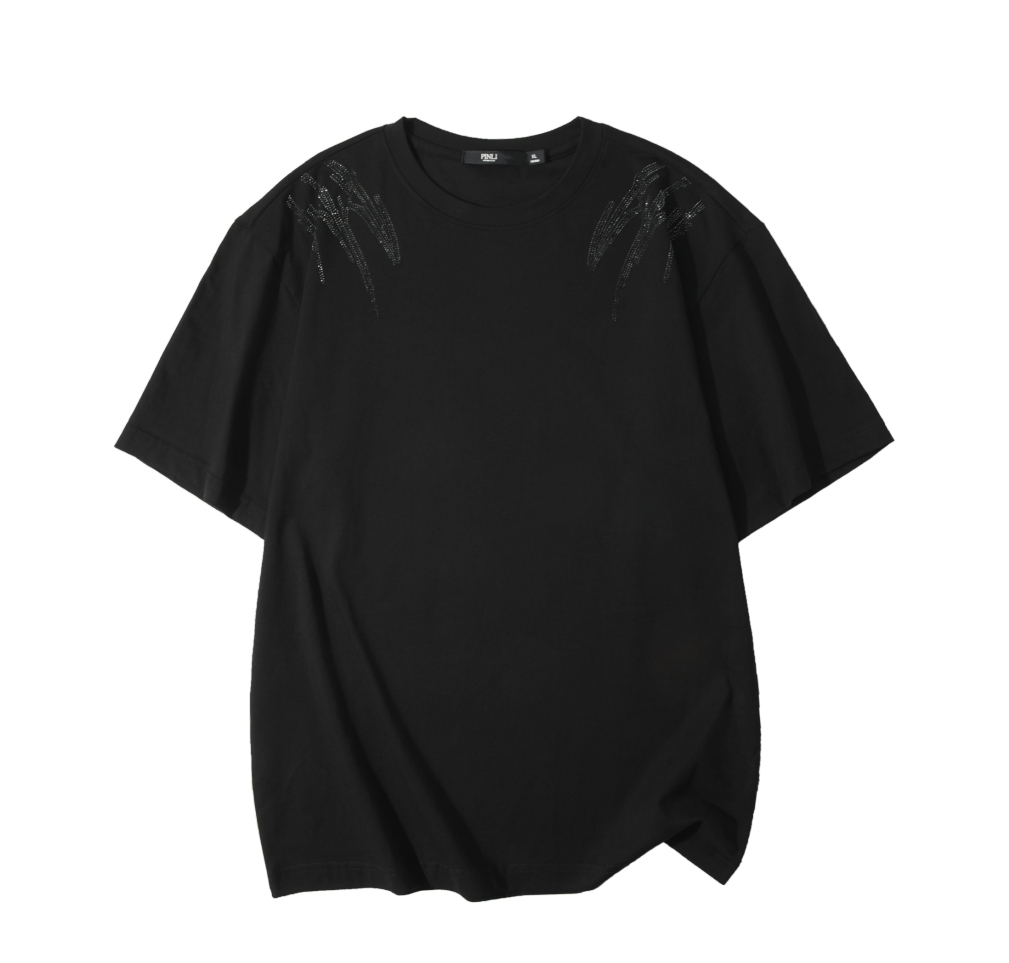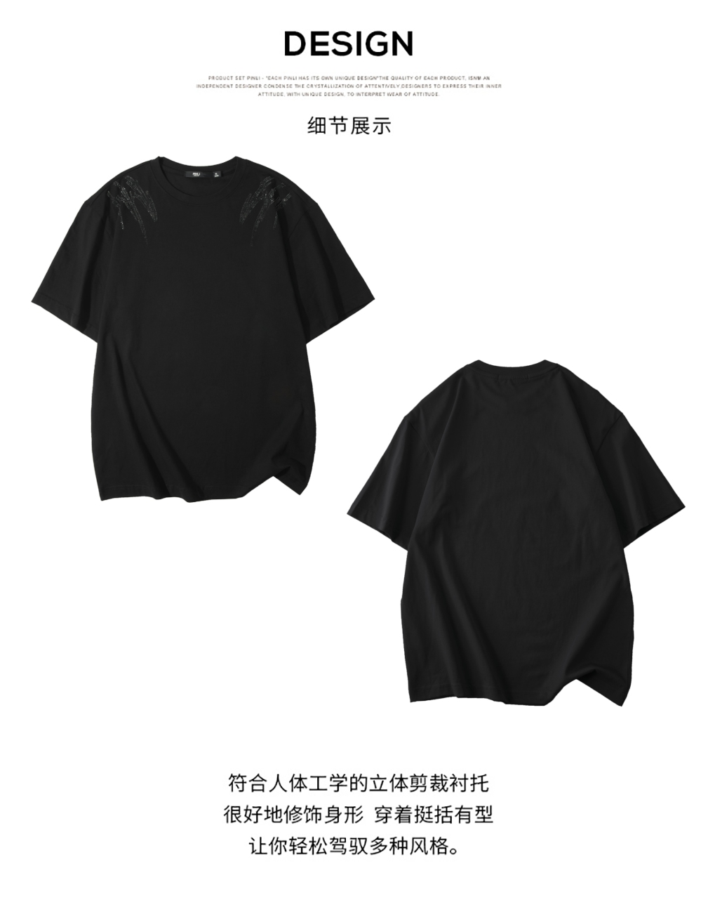 PINLI品立2025春夏新款男士圆领抓痕烫钻短袖T恤潮牌百搭半袖上衣BG252111010