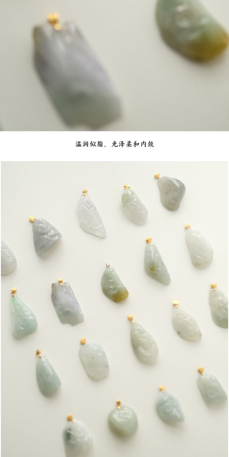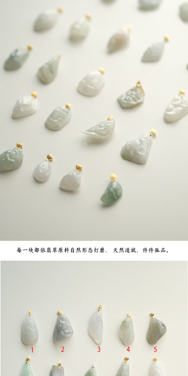 米马饰物 18K金镶嵌 天然糯冰种翡翠随形吊坠 自然造物 件件孤品
