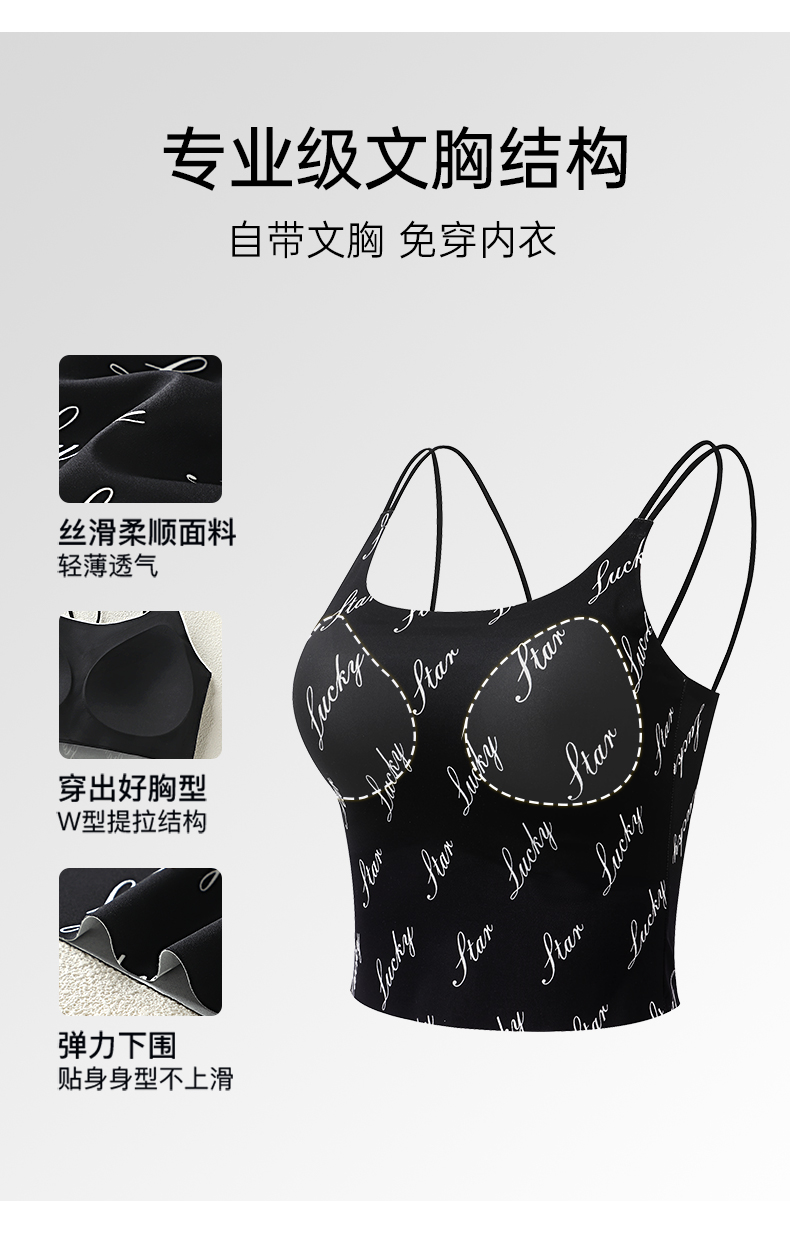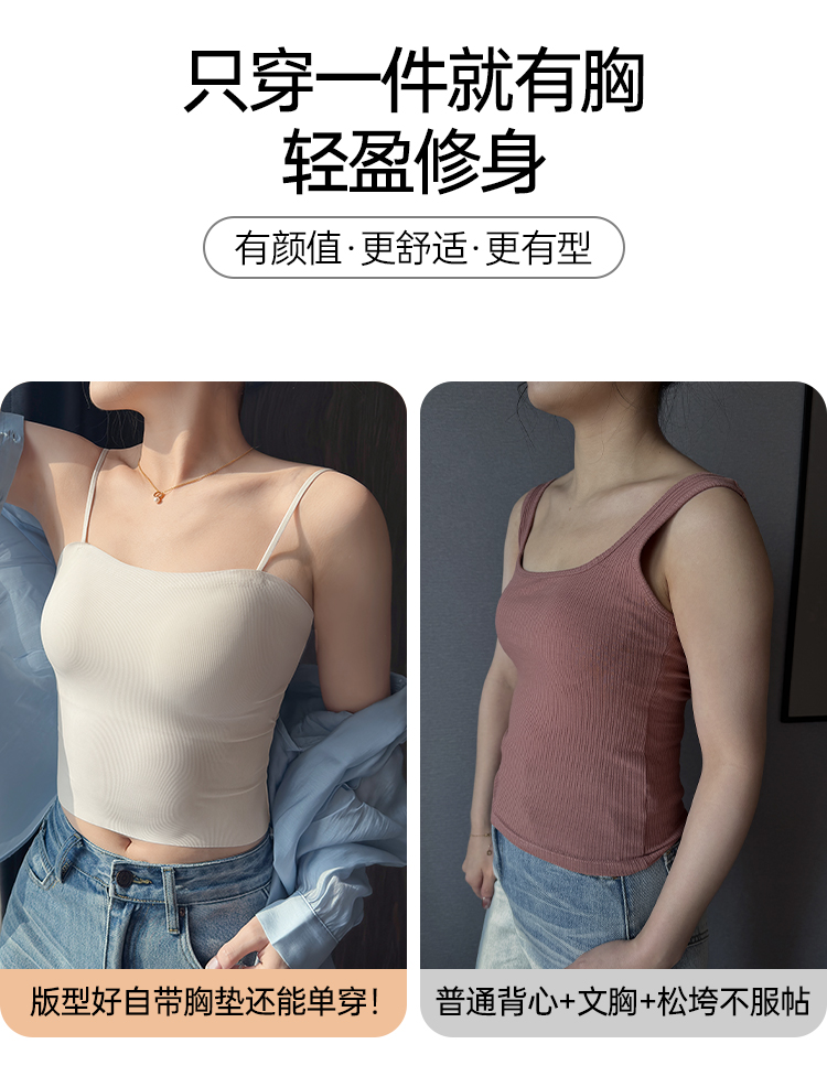 C2-【免穿文胸】润微文胸背心二合一3D立体无痕杯面 超细高弹纱线布料 洛羽冰蝉