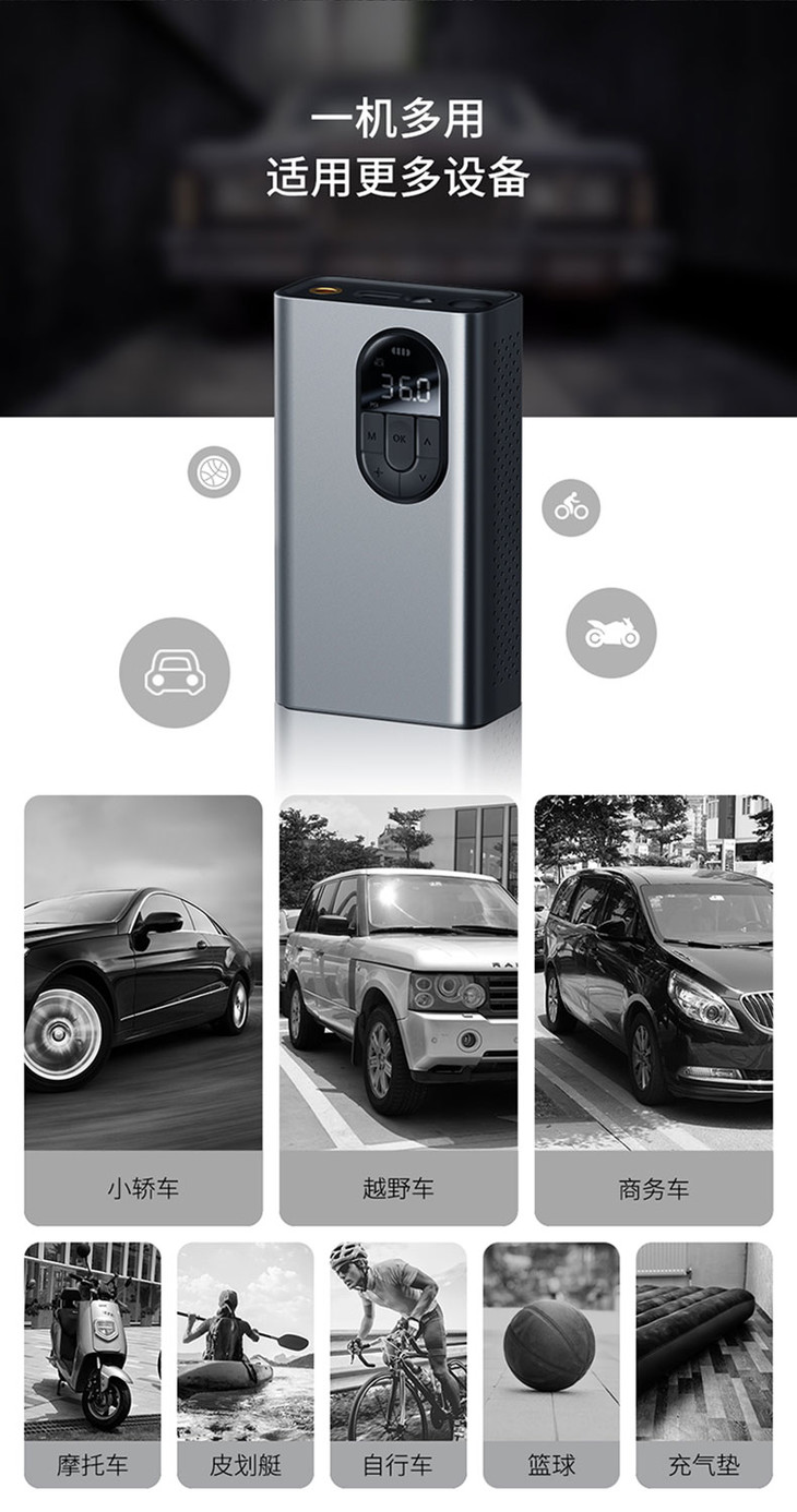 倍思 汽车充气泵 无线充电车载轮胎打气车用两用多功能小轿车便携式