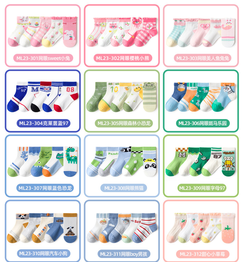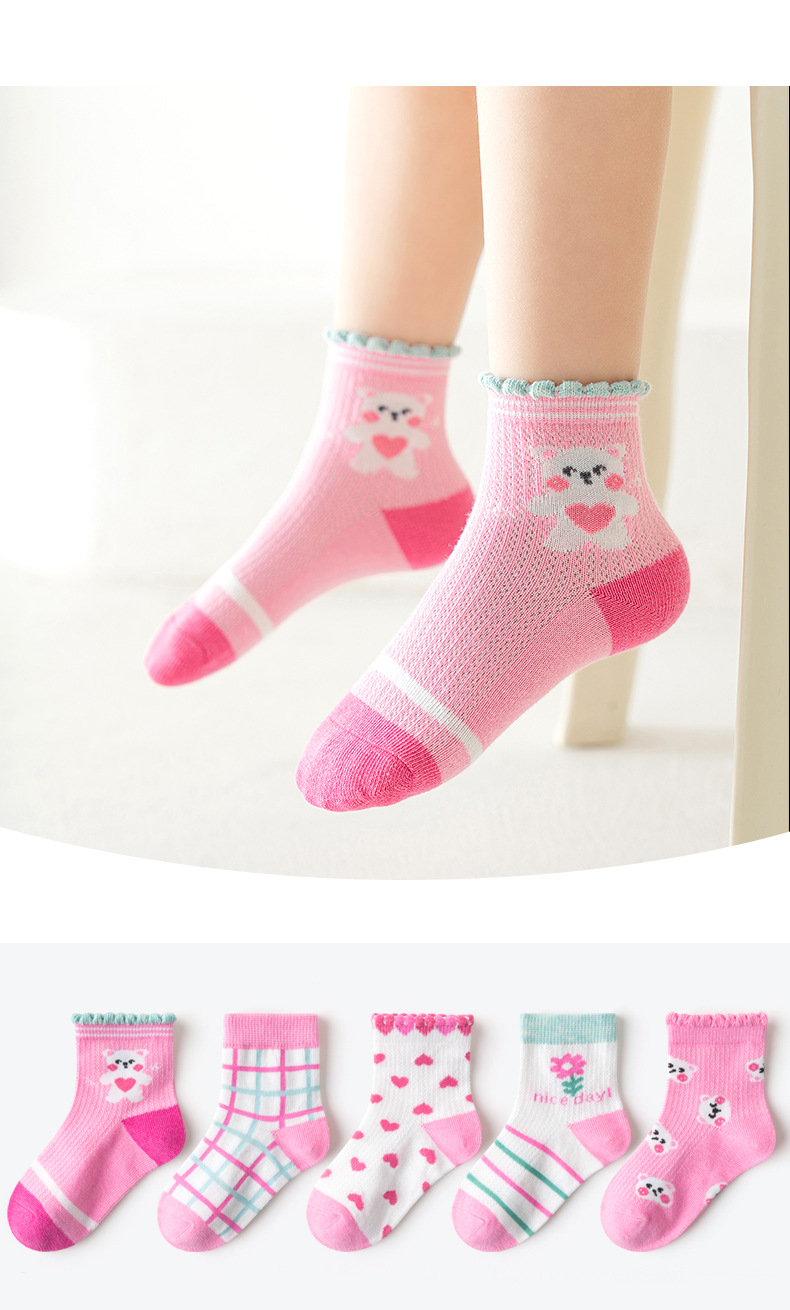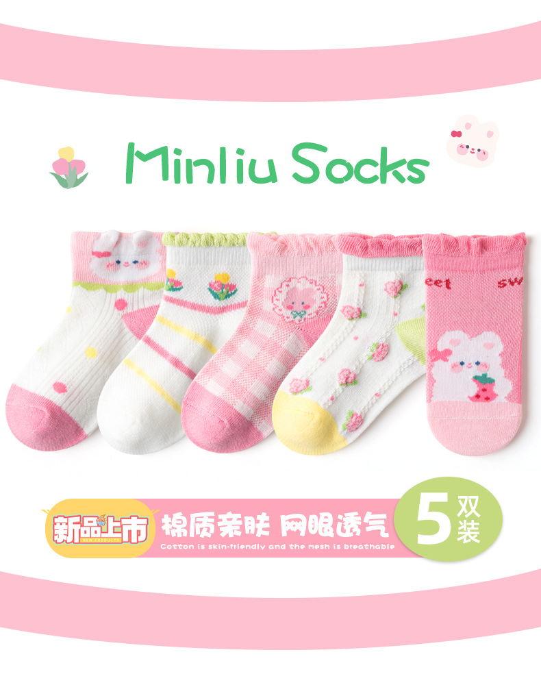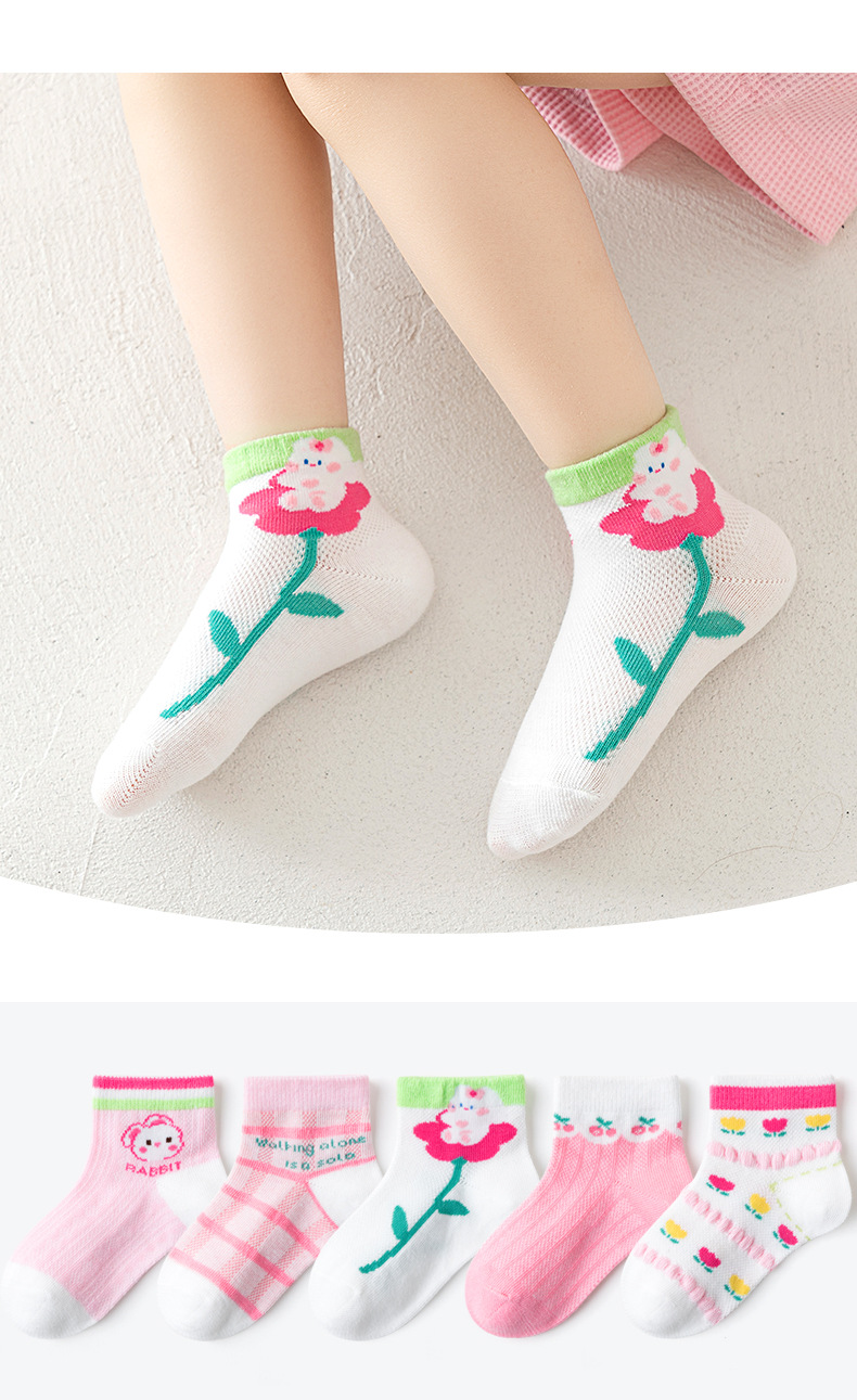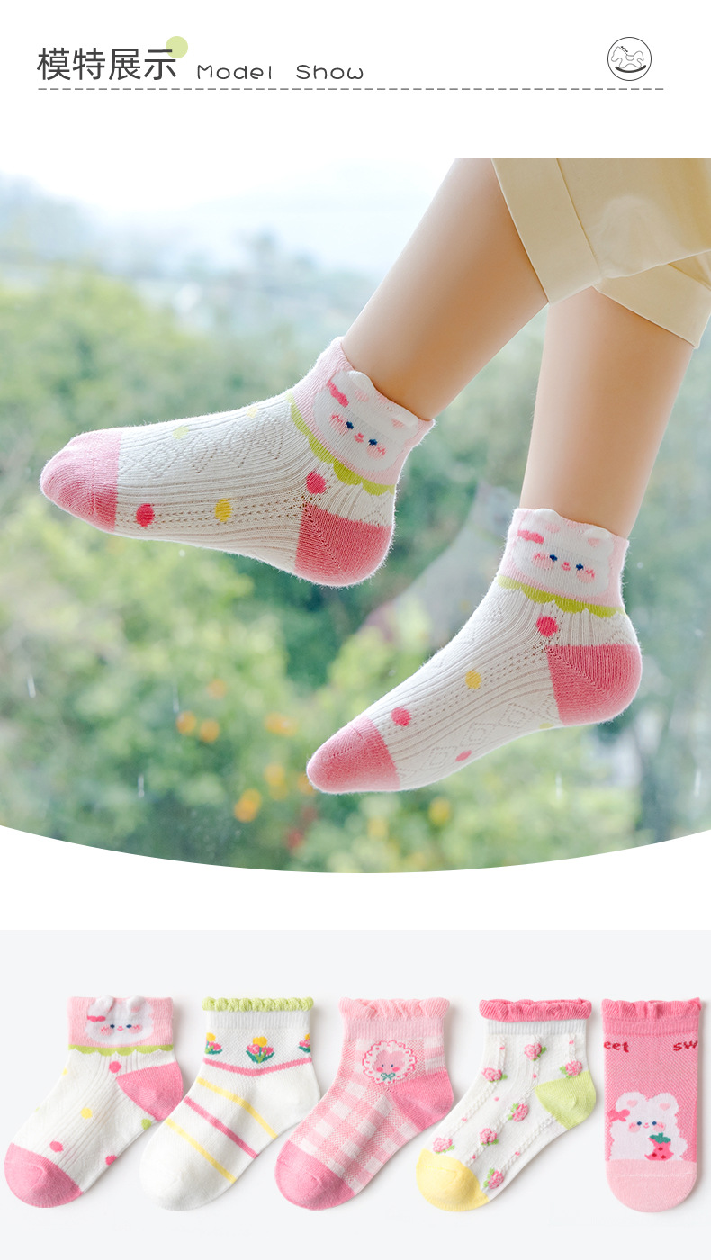 【5双装】2023新款儿童袜子春夏季网眼袜薄款男女童卡通棉袜中大童短袜