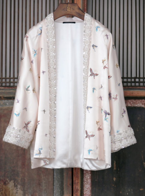 盛唐牡丹 | 松鼠葡萄真丝立领对襟外套(不夹棉-松鼠葡萄闪光面料款)