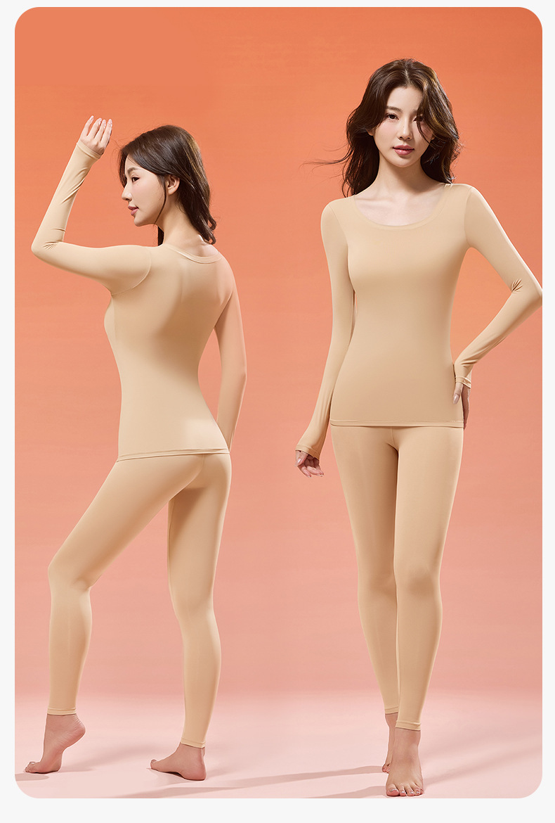 【润肤保暖❗️玻尿酸养肤肌底衣套装】锁温不臃肿,自带胸垫,免穿文胸内衣超舒服!秋冬季长袖隐形面膜高弹女士塑身打底衣固定杯
