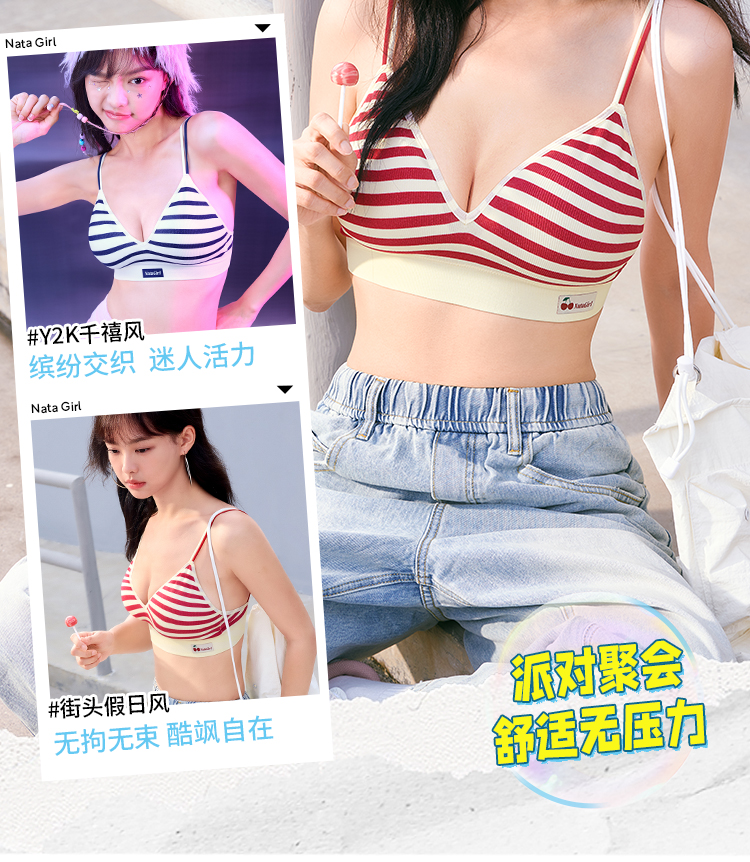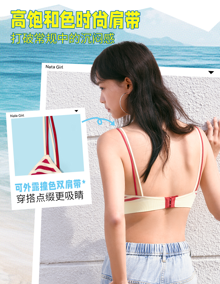 [假日无钢圈]显小三角杯文胸深V大胸显小显瘦可露背美背女