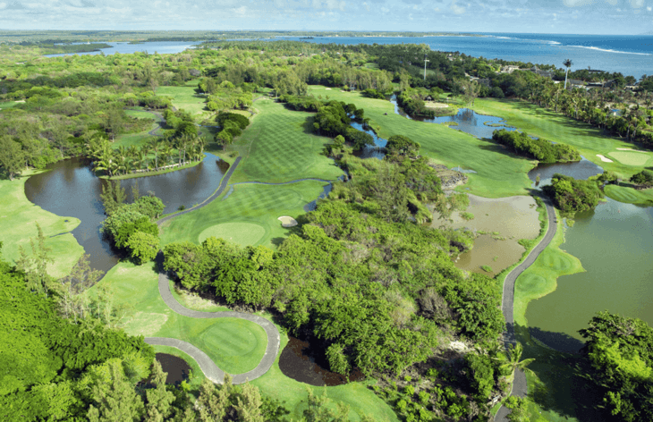 该球场位于鹿岛,是由两次获得美国高尔夫球赛冠军以及获得Ryder杯冠军的伯纳德-兰格Bernhard Langer设计,在布置上追求简洁,但球场景色美得迷人。几乎一半的球洞都是沿着海岸而设,只有一条沙滩将他们分开。其他的球洞围绕着红林丛生的海湾,可以观赏到附近的"猫和老鼠"山以及毛里求斯翠绿葱葱的乡村风景。鹿岛球场的难度系数在全世界排名20名之内。到达这个以阳光、沙滩、棕榈树和高尔夫运动著称的海中仙境,你就会迫不及待地一展身手。
