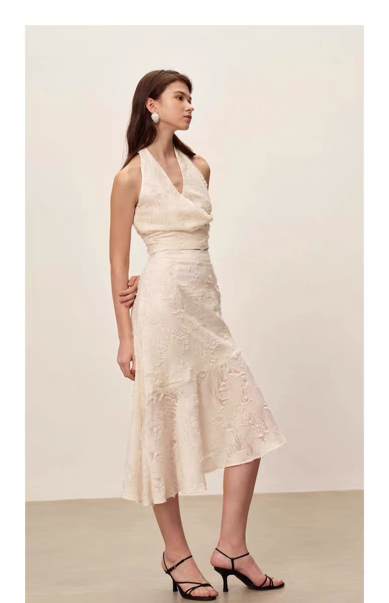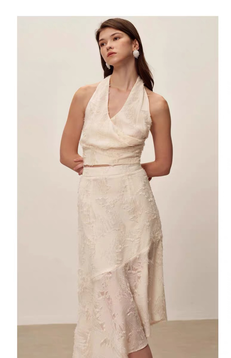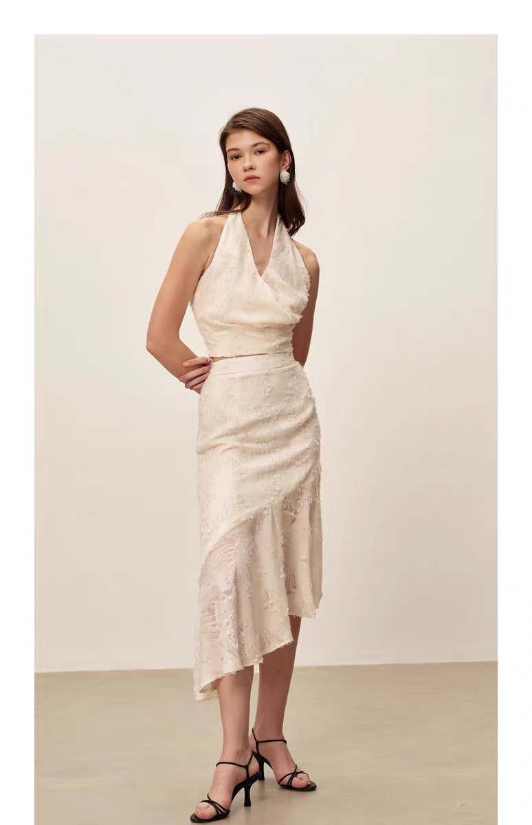 SIJIA|蕾丝流苏挂脖上衣 [ 白SS2551 ]