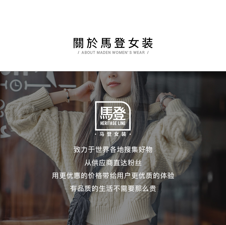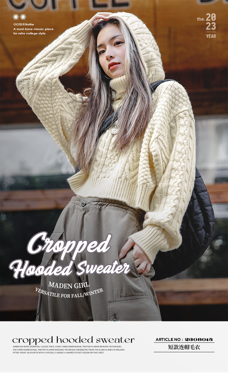 马登女装美式复古连帽高领毛衣秋冬外穿短款堆堆帽针织衫设计感