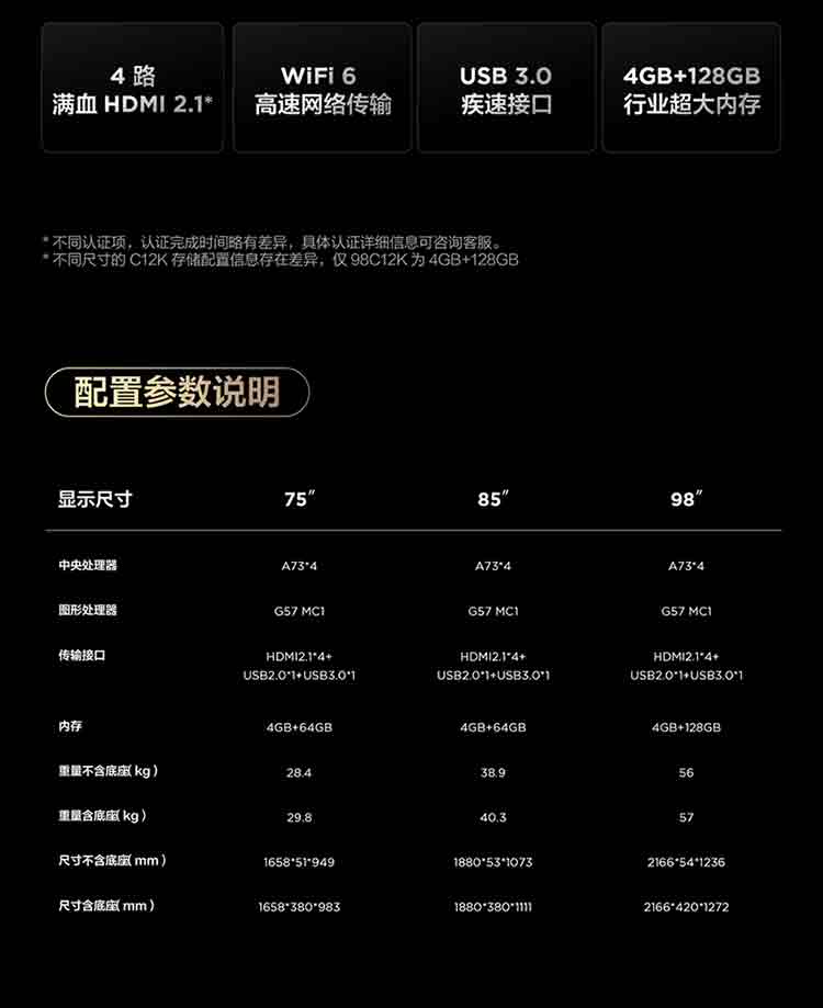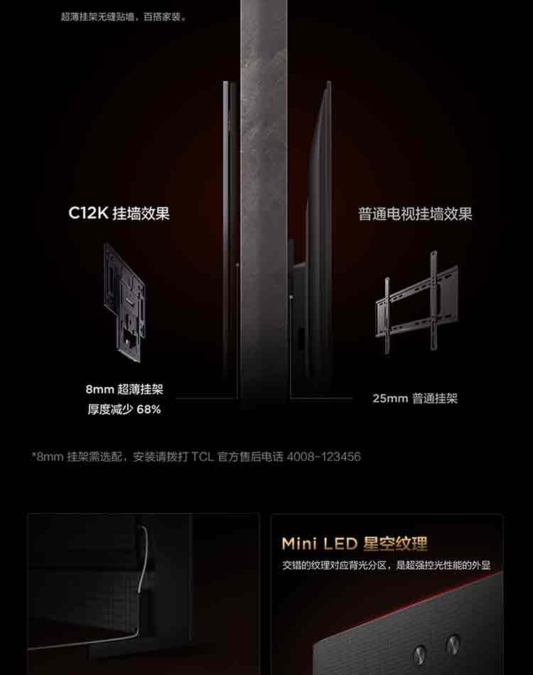 TCL电视 75C12K 极景QD-Mini LED 极景无黑边 蝶翼华曜屏 2176个万象分区 绚彩XDR 5000nits 75英寸