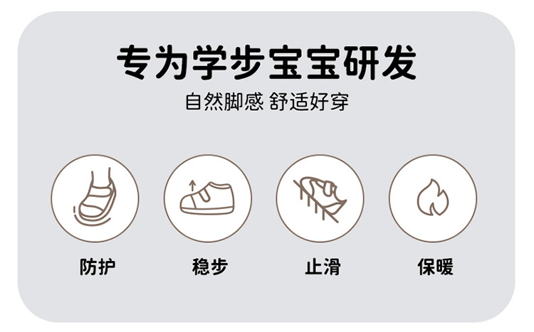 贝贝怡加绒秋冬新款男女宝宝学步鞋柔软舒适防撞鞋运动休闲童鞋ZB4DX010