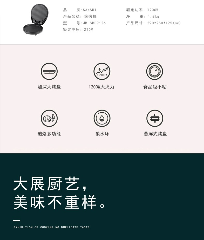 型号:JM-SBD9126 烤盘直径:25cm以下 机械式操控
