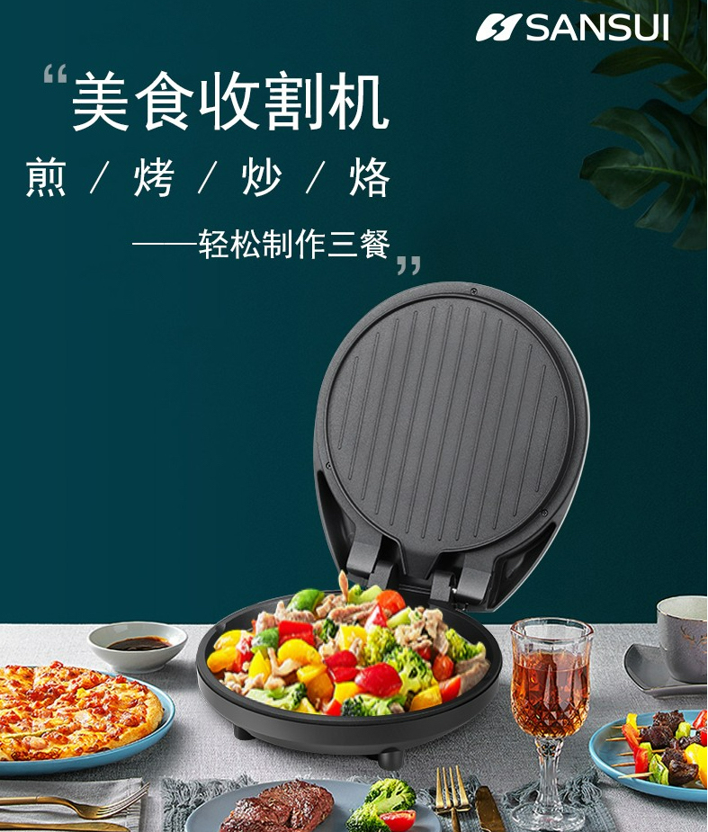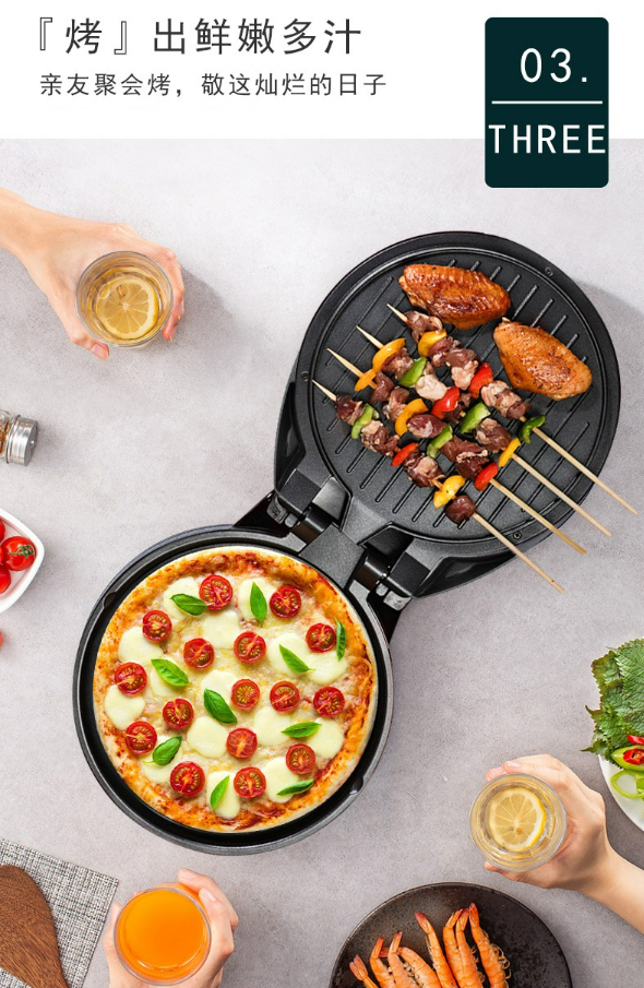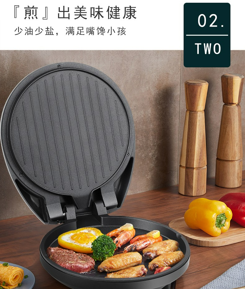 [玫瑰]180度开合煎烤,轻易摊平,双面煎烤