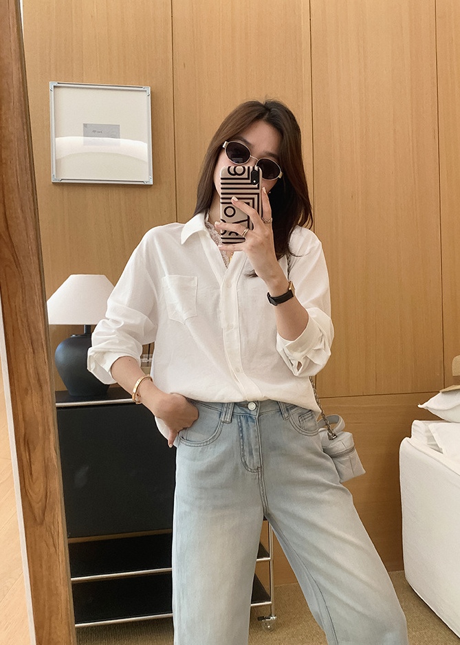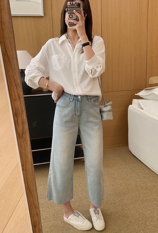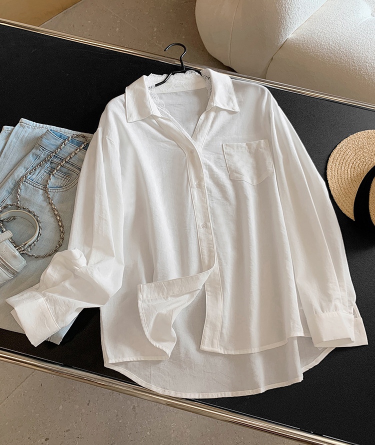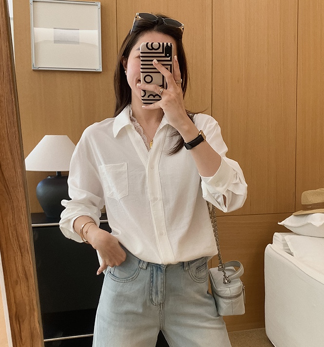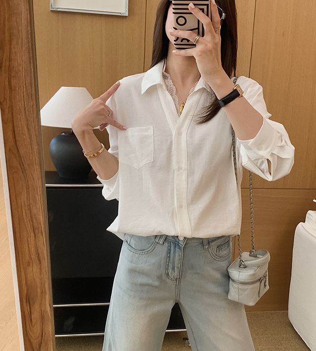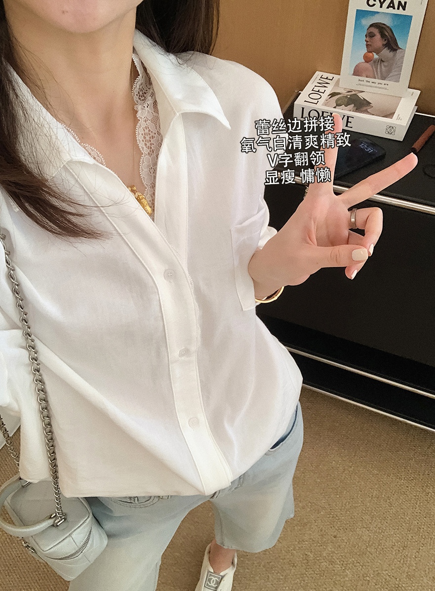 法式精致重工蕾丝花边拼接V领长袖衬衫~穿在身上就像深吸一口氧气,舒服!