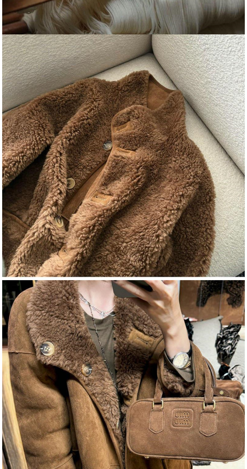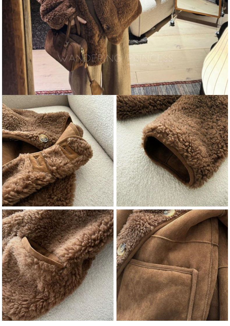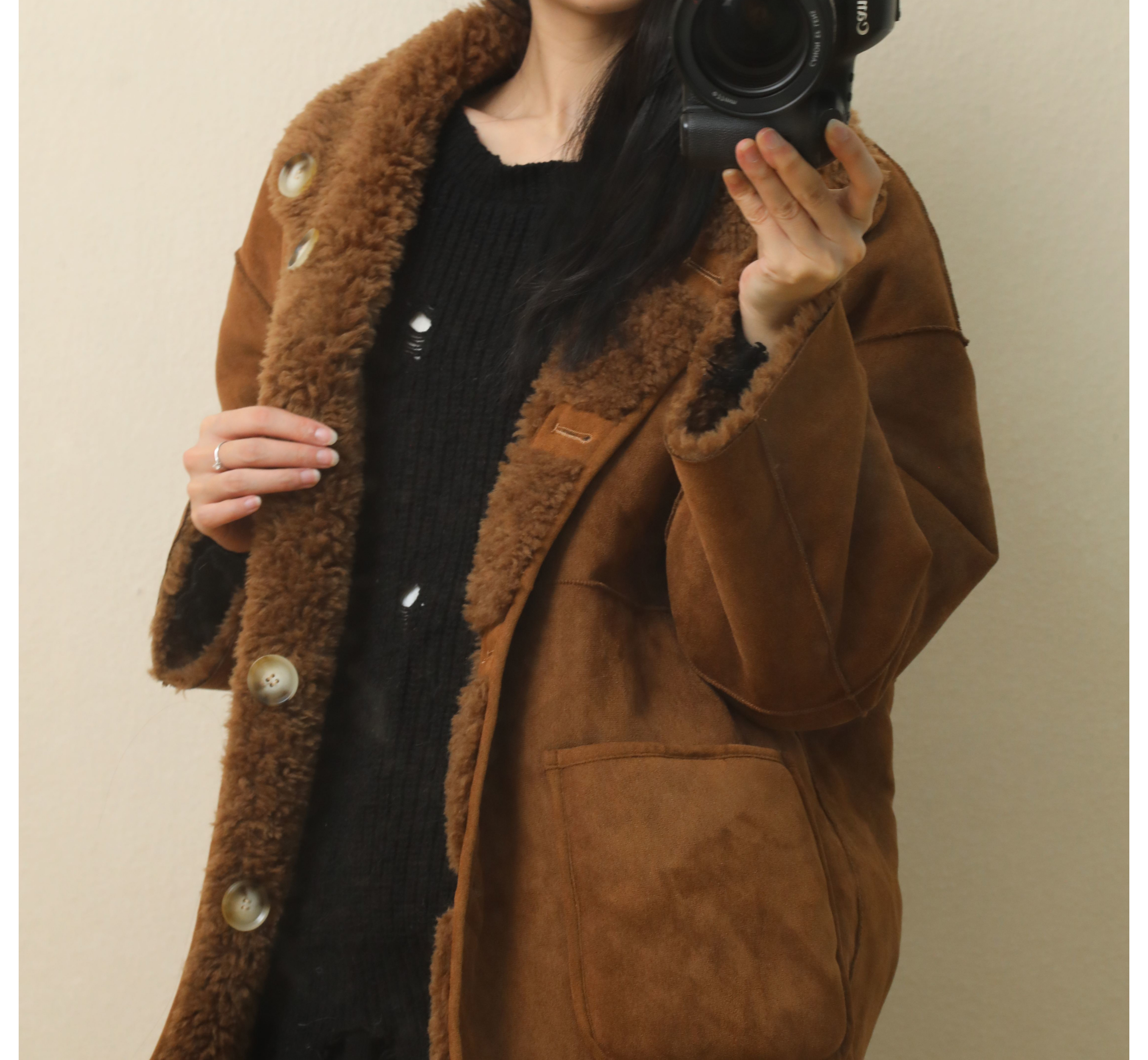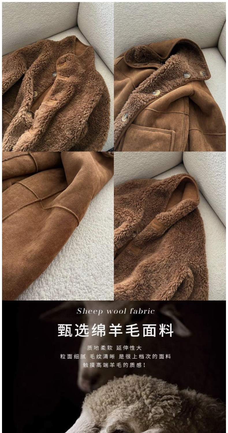 【L*OEWE秀场同款】双面穿焦糖玛奇朵麂皮绒皮毛一体外套A054008(下单3-7天发货)