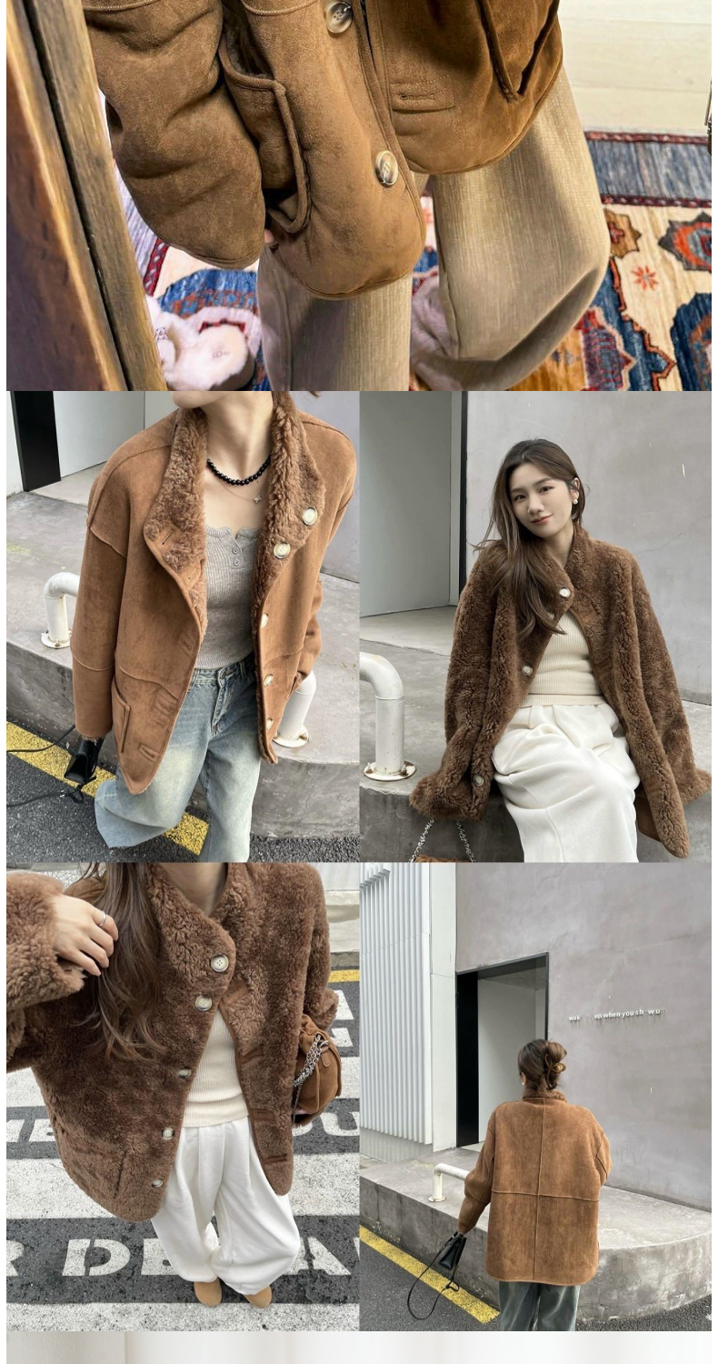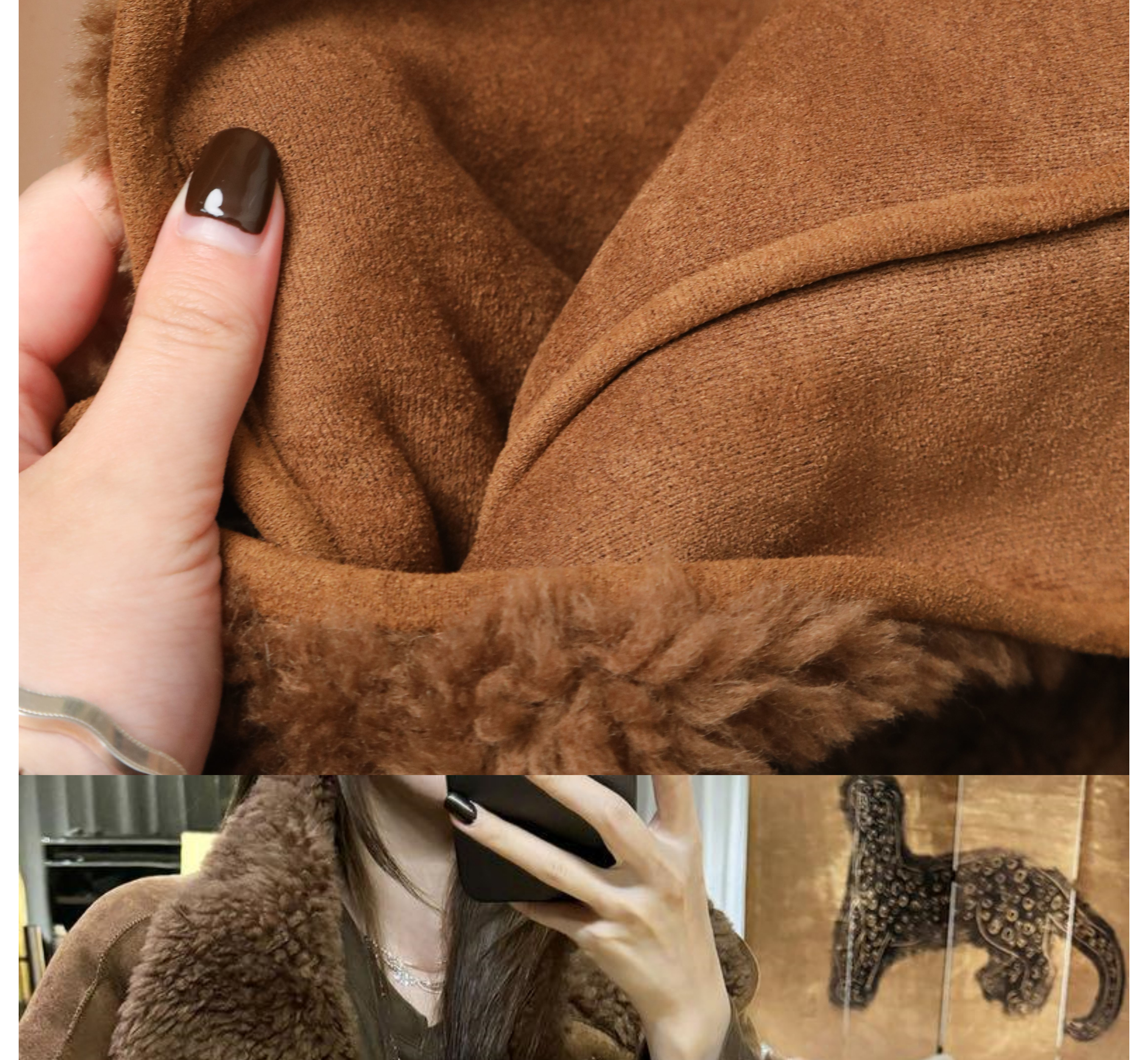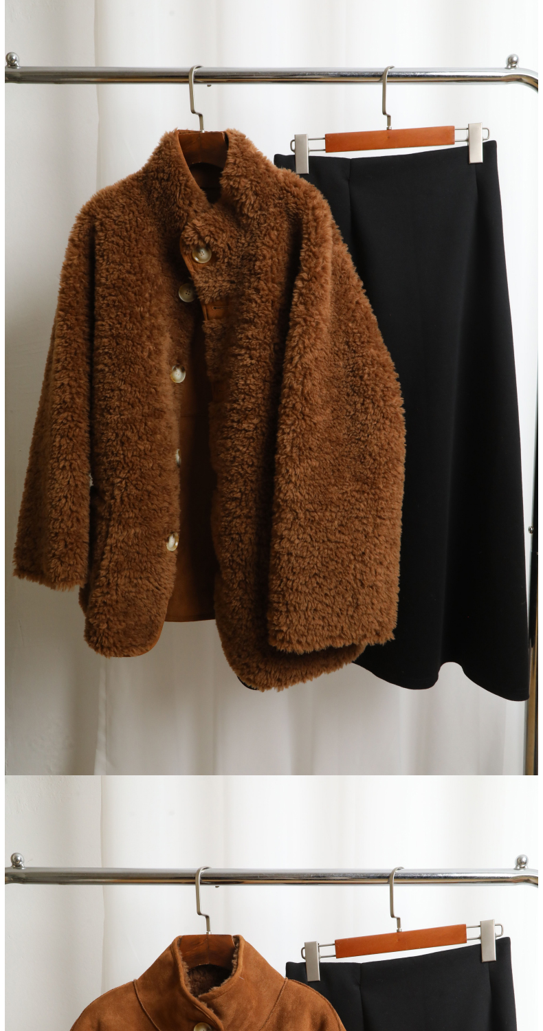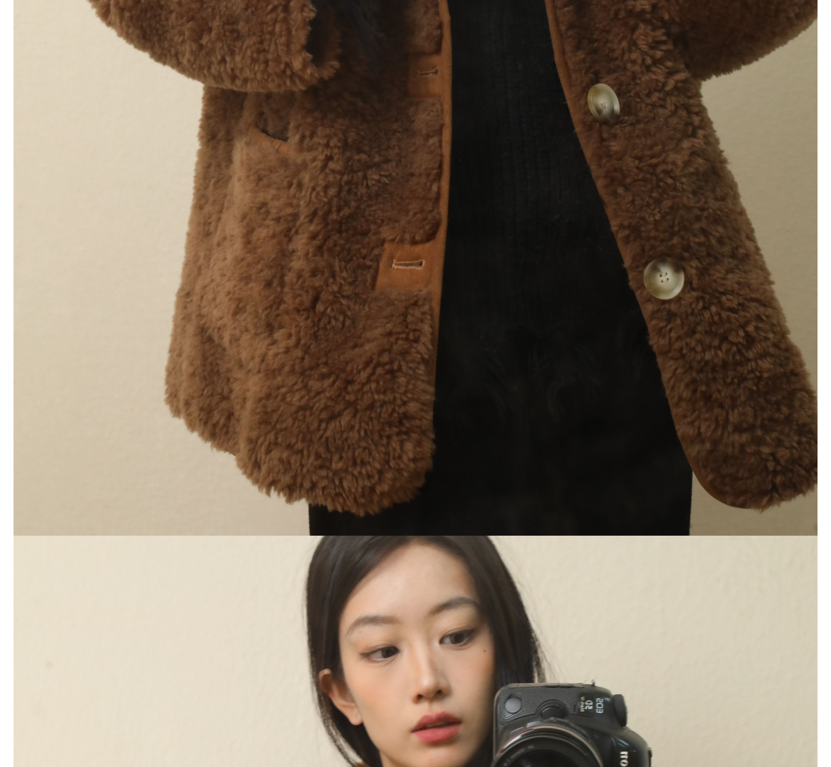 【L*OEWE秀场同款】双面穿焦糖玛奇朵麂皮绒皮毛一体外套A054008(下单3-7天发货)
