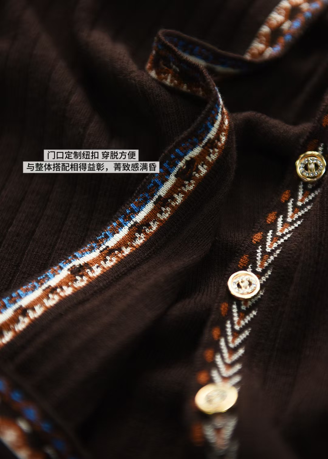 超细线羊毛黄金混纱配比,织法细腻紧实,更加精致亲肤~