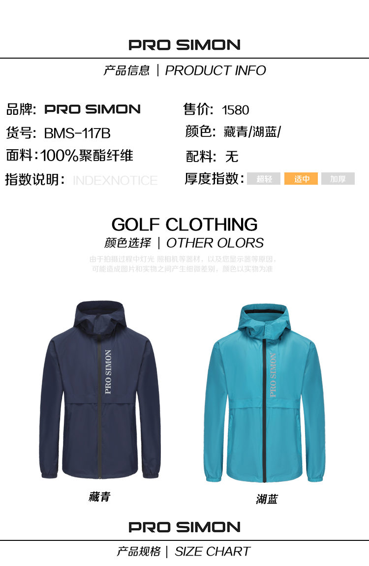BMS-117B(PROSIMON高尔夫男款春夏轻薄防风防雨连帽外套风衣)