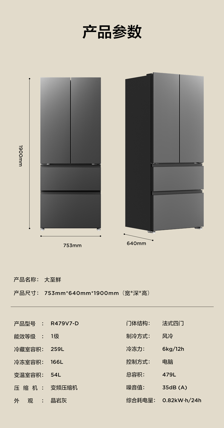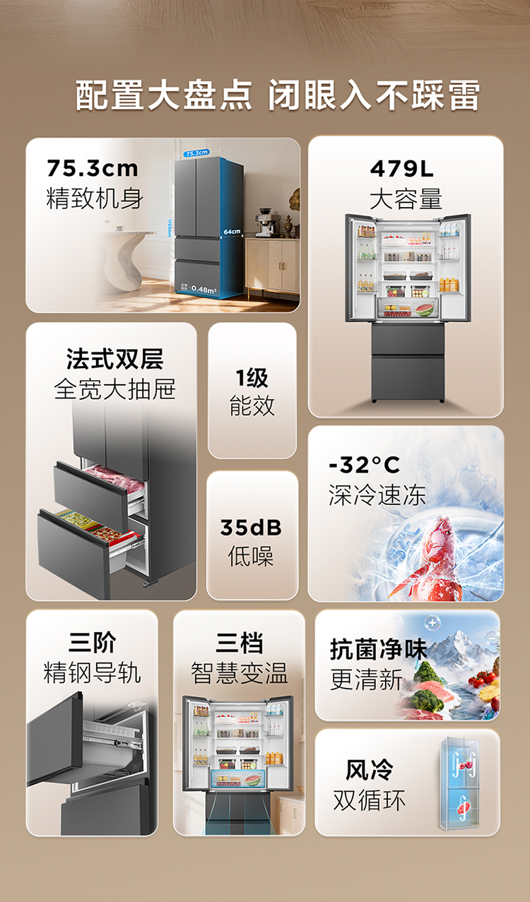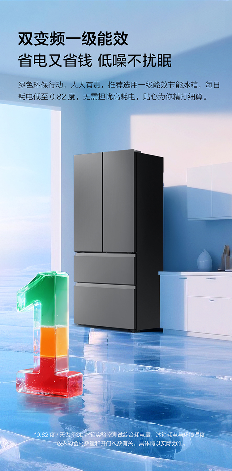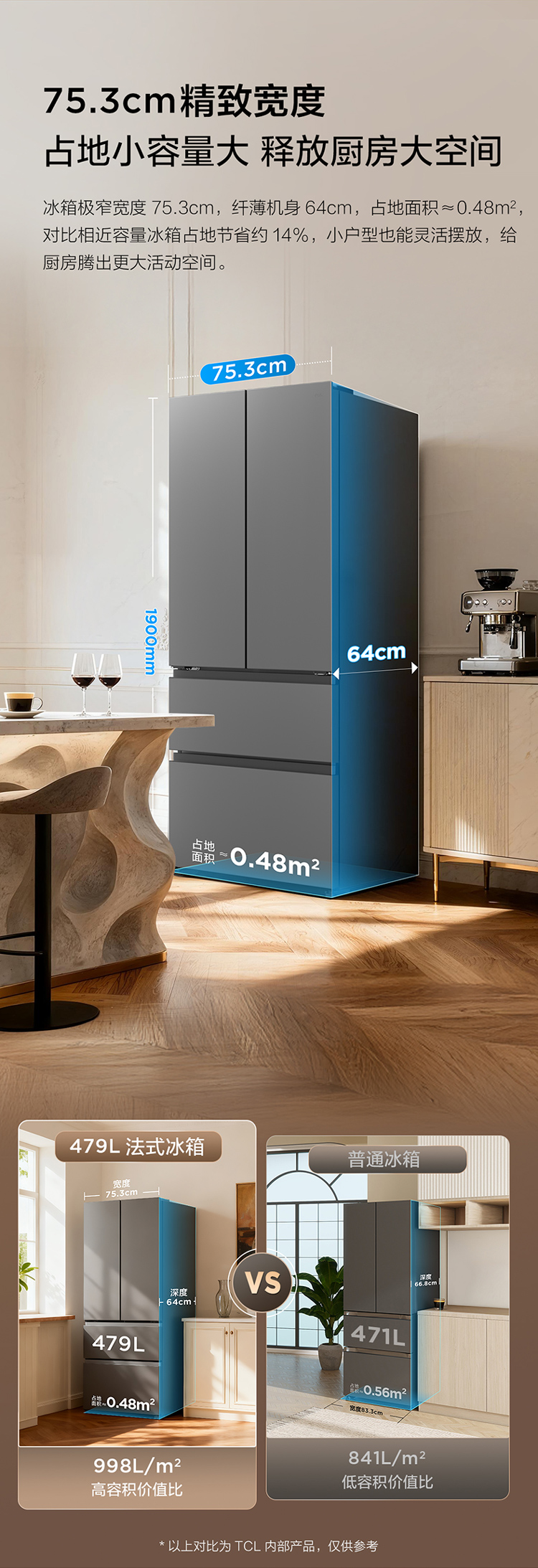 【新品上市】TCL 大至鲜479升法式多门四开门超窄小户型大容量净味抗菌深冷速冻电冰箱 R479V7-D