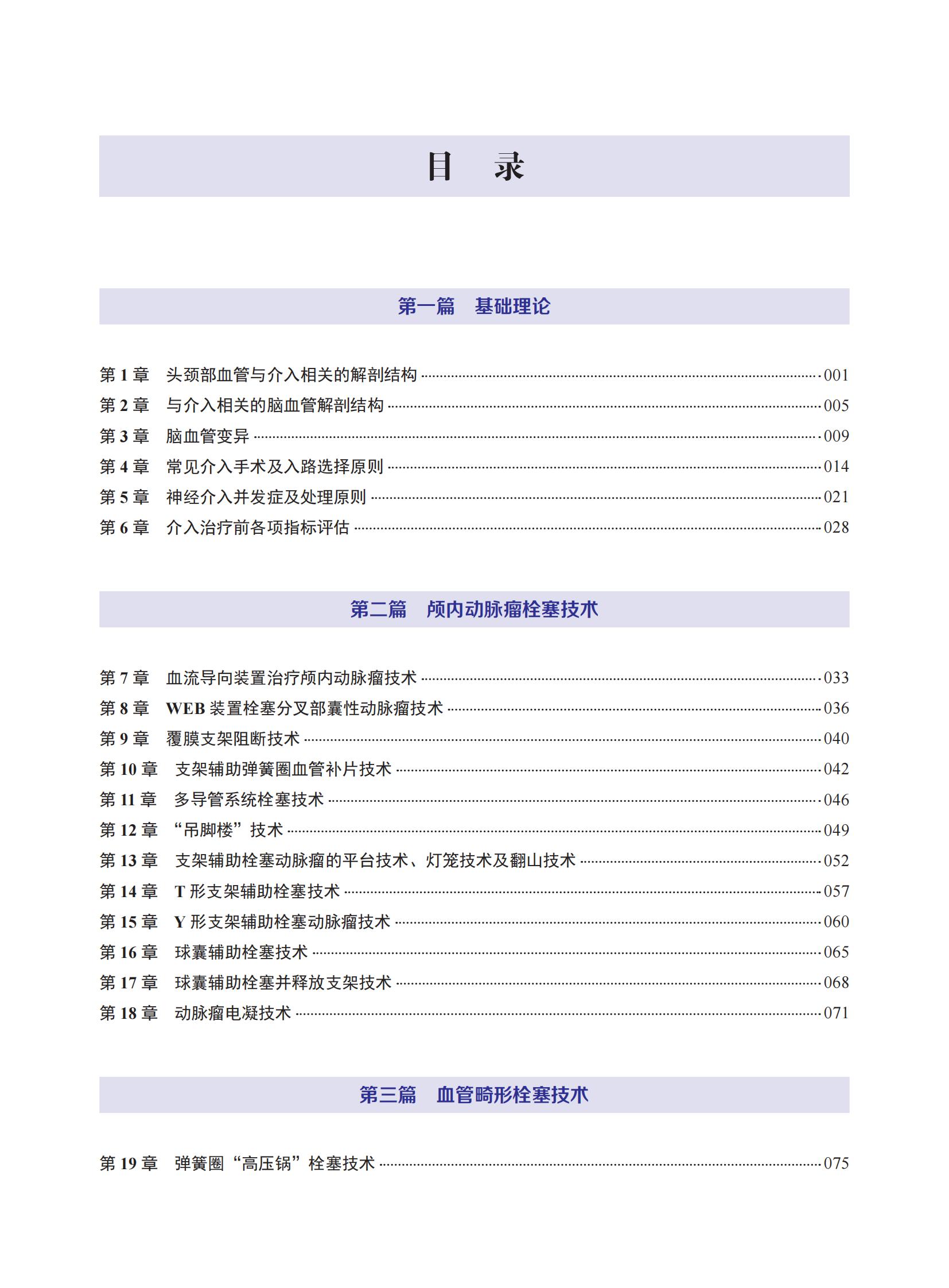 主编:刘赫,主任医师,硕士研究生导师,首都医科大学附属北京朝阳医院神经外科副主任。日本神经外科博士、博士后。中国健康管理协会主动健康分会副会长,北京慢性病防治与健康教育研究会神经介入分会主任委员,中国卒中学会神经介入分会委员,中日神经外科学会常务委员,北京医师协会神经介入学分会常务理事,青委副主任委员,北京神经内科学会神经介入分会常务委员,中国脑卒中学会神经介入分会委员,《中华解剖与临床杂志》《中国分子心脏病学杂志》《中华介入放射学电子杂志》编委,HELIYON 和《中华医学杂志》审稿专家。主要从事神经介入治疗脑出血及缺血疾病的临床及相关基础研究、干细胞移植的临床及基础研究。国外国际会议发表演讲18次,承担科研课题7项,曾获北京市优秀人才奖。于 BRAIN 等 SCI 收录期刊发表学术论文 50 篇。汪阳,医学博士,主任医师、教授,博士和硕士研究生导师,首都医科大学附属北京朝阳医院神经外科主任。中华医学会神经外科分会神经介入学组委员,中国医师协会神经介入专委会委员,国家卫健委能力和继续教育委员会委员,中国研究型医院学会脑血管病学专业委员会常务委员、微侵袭神经外科分会委员,中国卒中学会复合介入神经外科分会常务委员、神经介入分会委员,北京市神经科学学会神经介入专委会主任委员,北京神经内科学会神经介入分会副主任委员。从医 20 余年,长期专注脑血管疾病的诊治,精通颅内动脉瘤和急性缺血性脑卒中的介入治疗。在国内较早开展高分辨核磁共振在颅内夹层动脉瘤中的应用,推动颅内动脉瘤精准诊治和无创随访。积极推动医院的脑卒中中心建设,以“一站式”影像检查为特色的脑卒中绿色通道建设成绩优异。主持国家自然科学基金项目 2 项、省部级课题 4 项、厅局级课题 3 项;参与多部国内神经介入专家共识的编写。