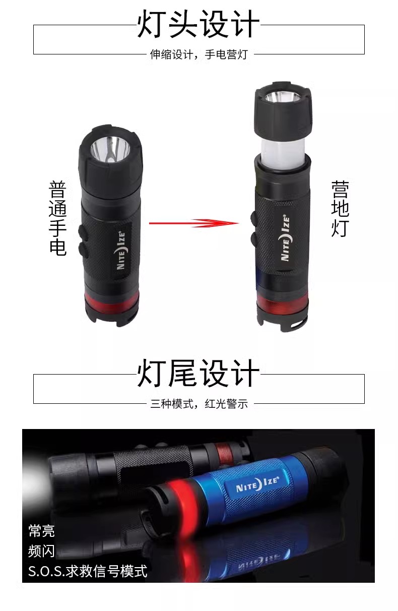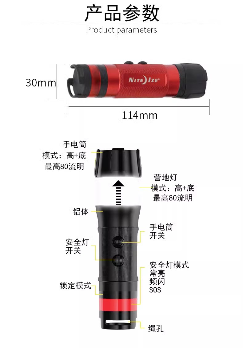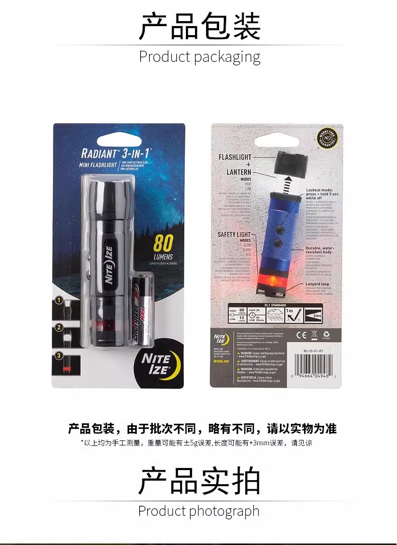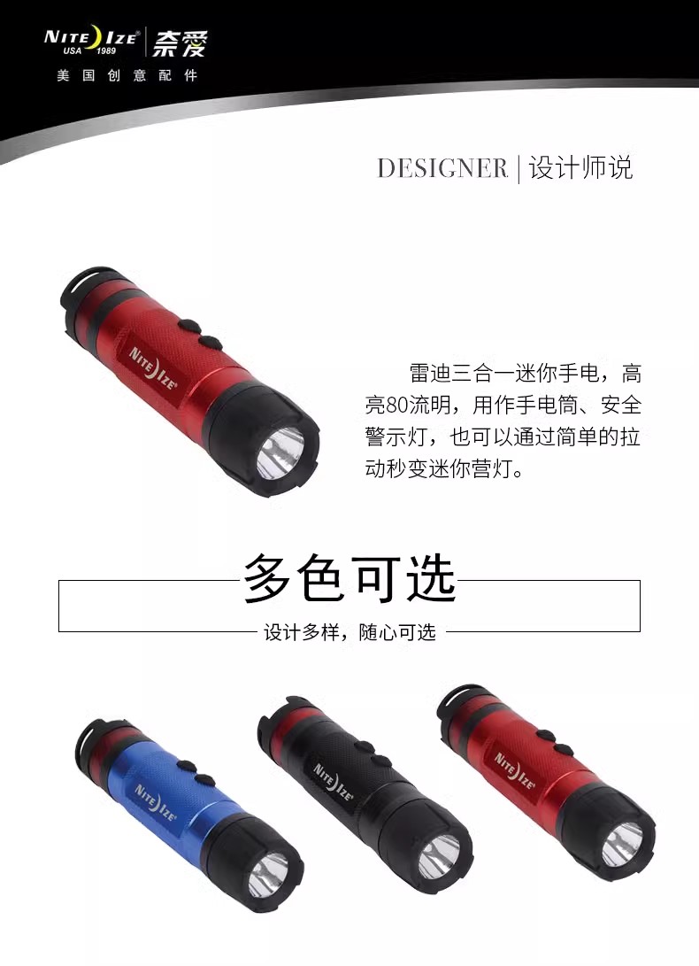 奈爱niteize雷迪三合一小手电筒迷你家用便携户外led小型手电筒