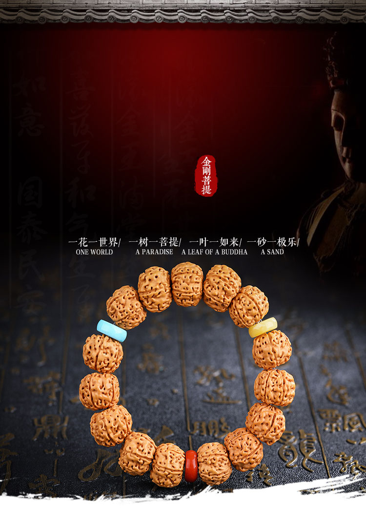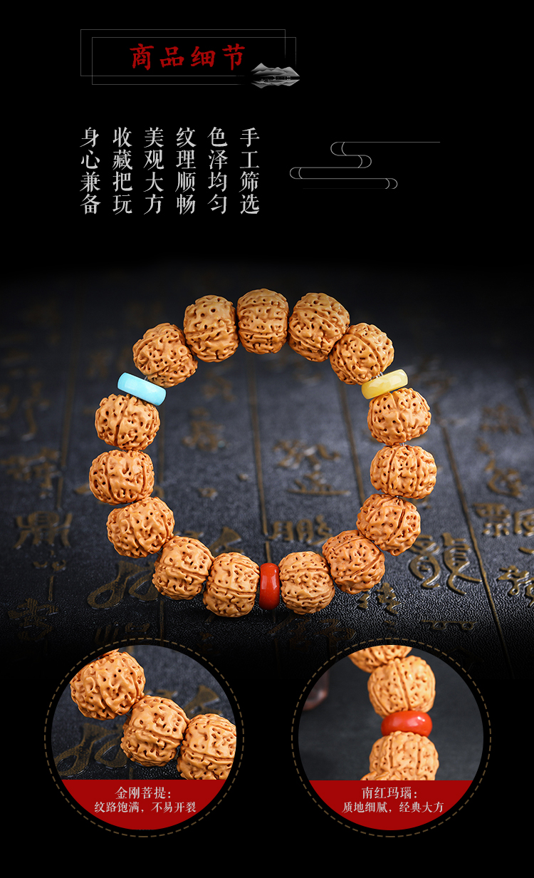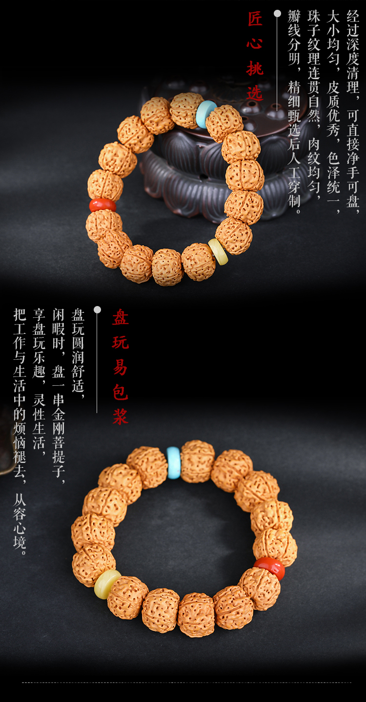 六鑫珠宝 尼泊尔五瓣爆肉双龙纹大金刚菩提手串14-15mm
