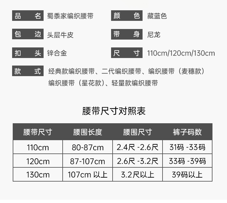【蜀黍家编织腰带】无孔设计编织腰带配饰 经久不坏尼龙编织带