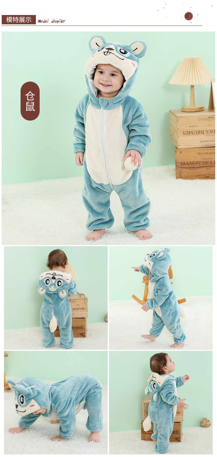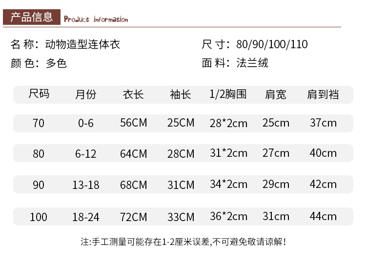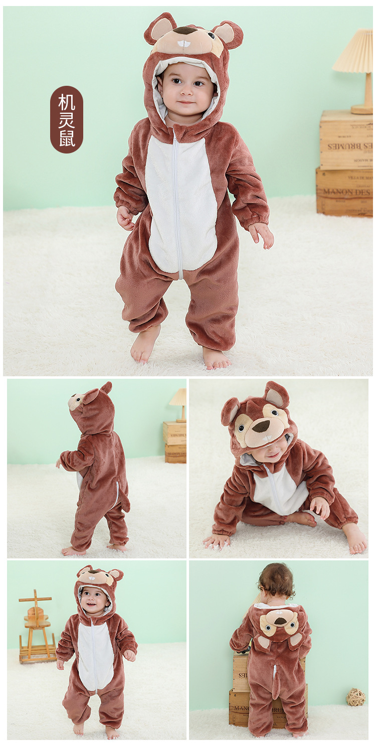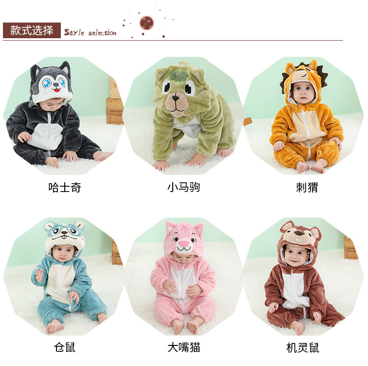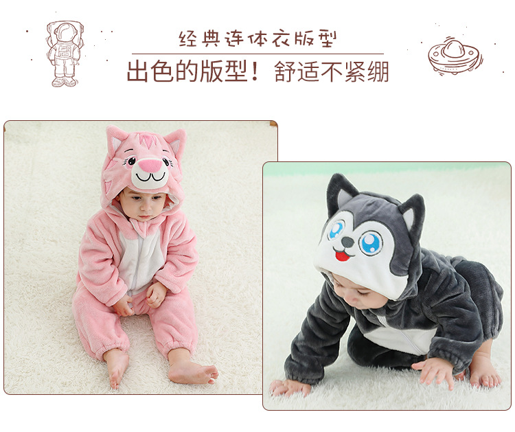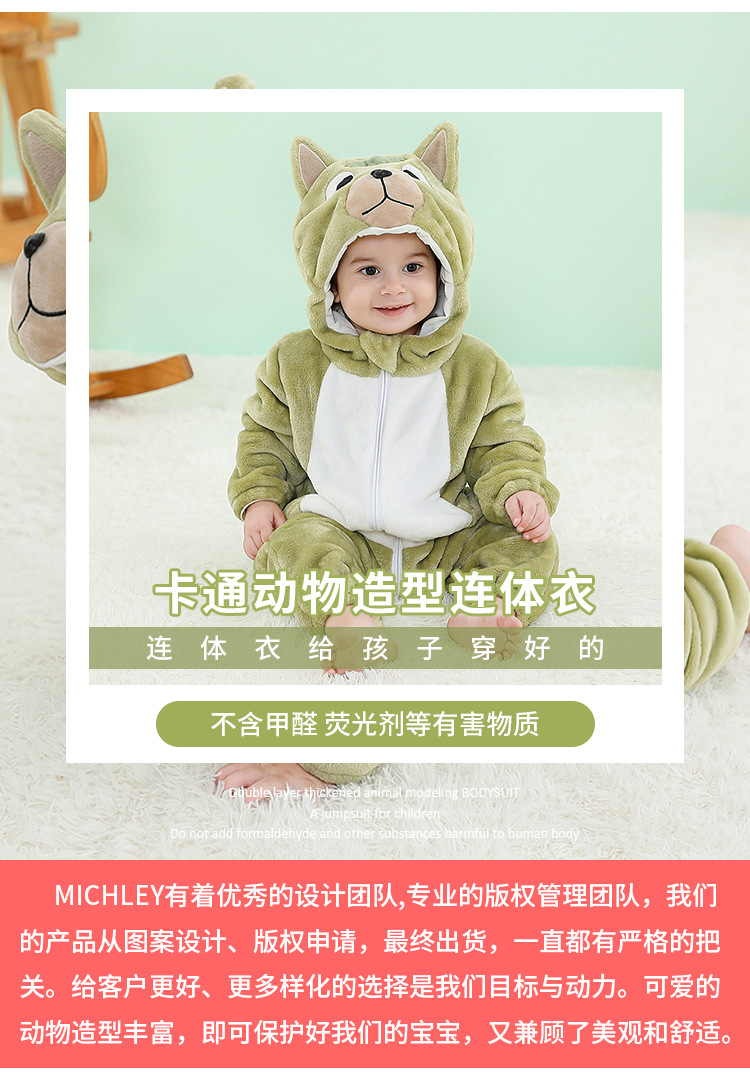 【卡通动物造型连体衣】MICHELY 法兰绒儿童连体衣 婴儿ins风爬服 宝宝春秋外出 连体衣