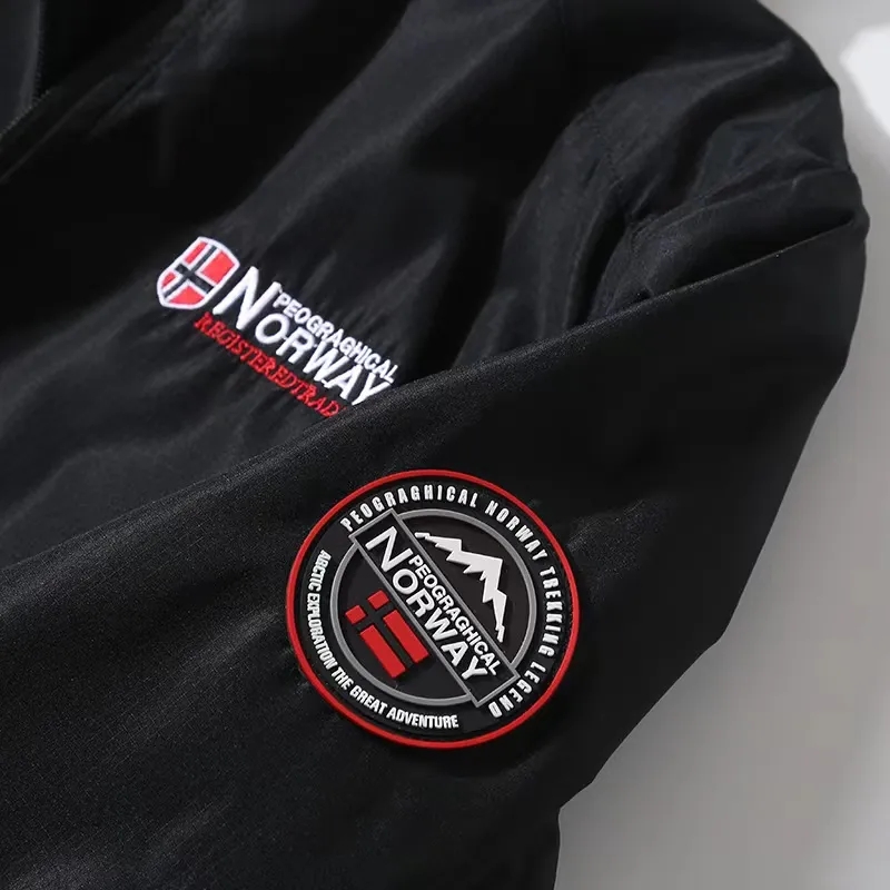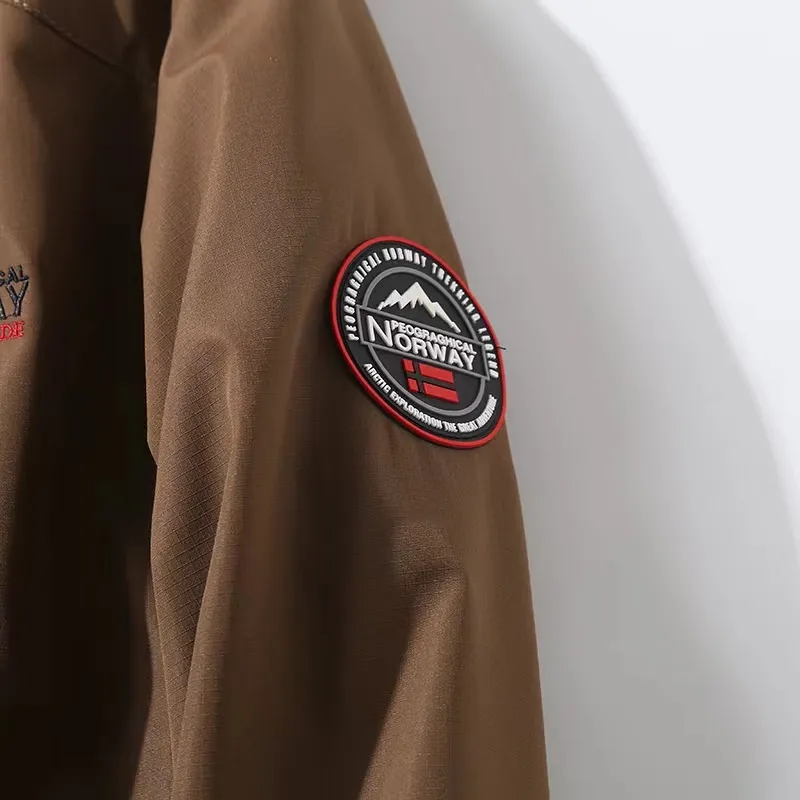 胸前一行精美的绣花图,袖口单个皮标LOGO设计,细腻精致
