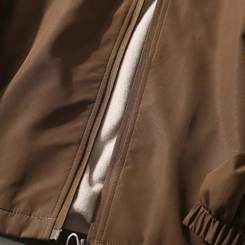 面料表面是一层梭织面料,面料柔软,轻盈,快干,易洗‘,防风防水