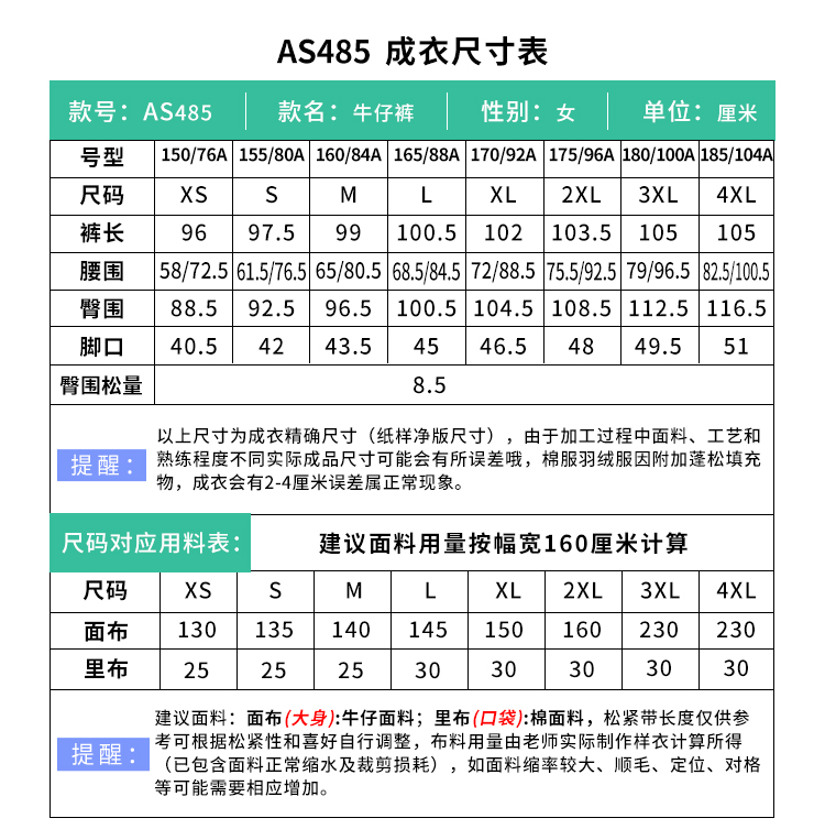 裁缝学苑AS485直筒阔腿裤纸样女装新款百搭裤子样板图纸