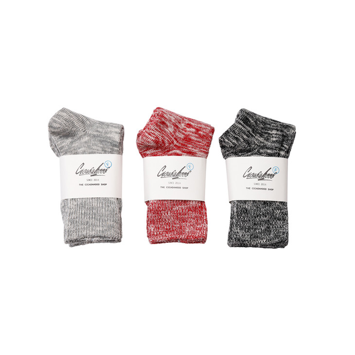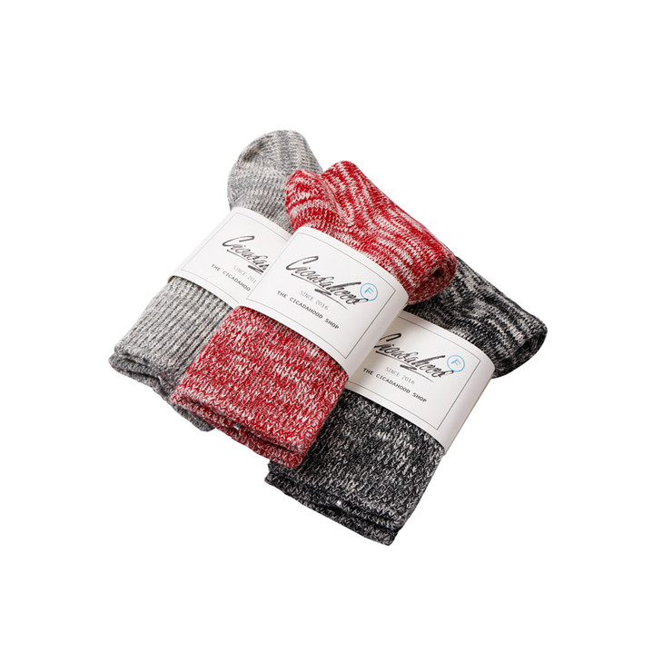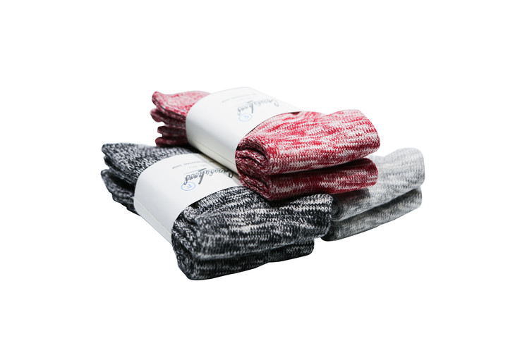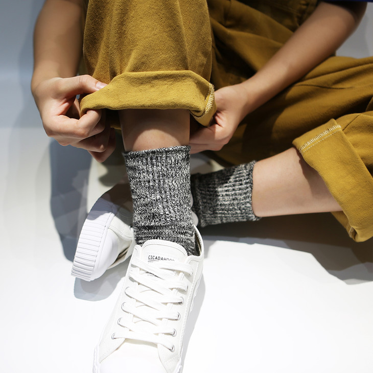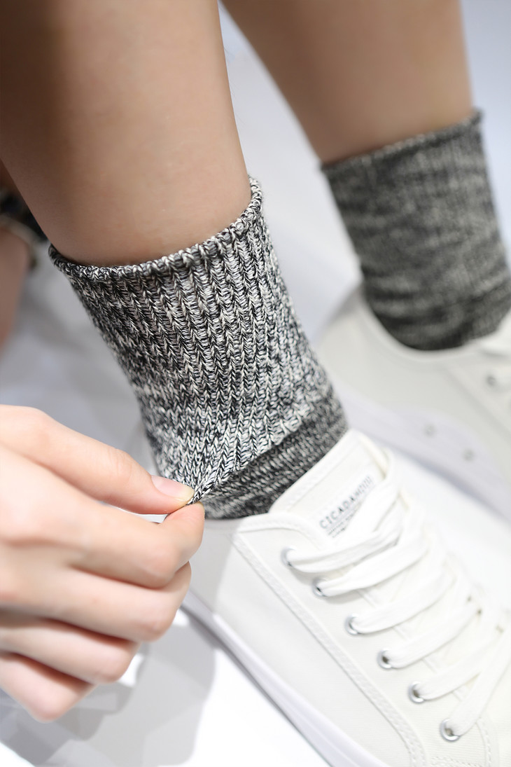 工艺: 低速古董机纯棉混织(国内现存不超过20台,每台一天只能织 20 双左右袜子)
