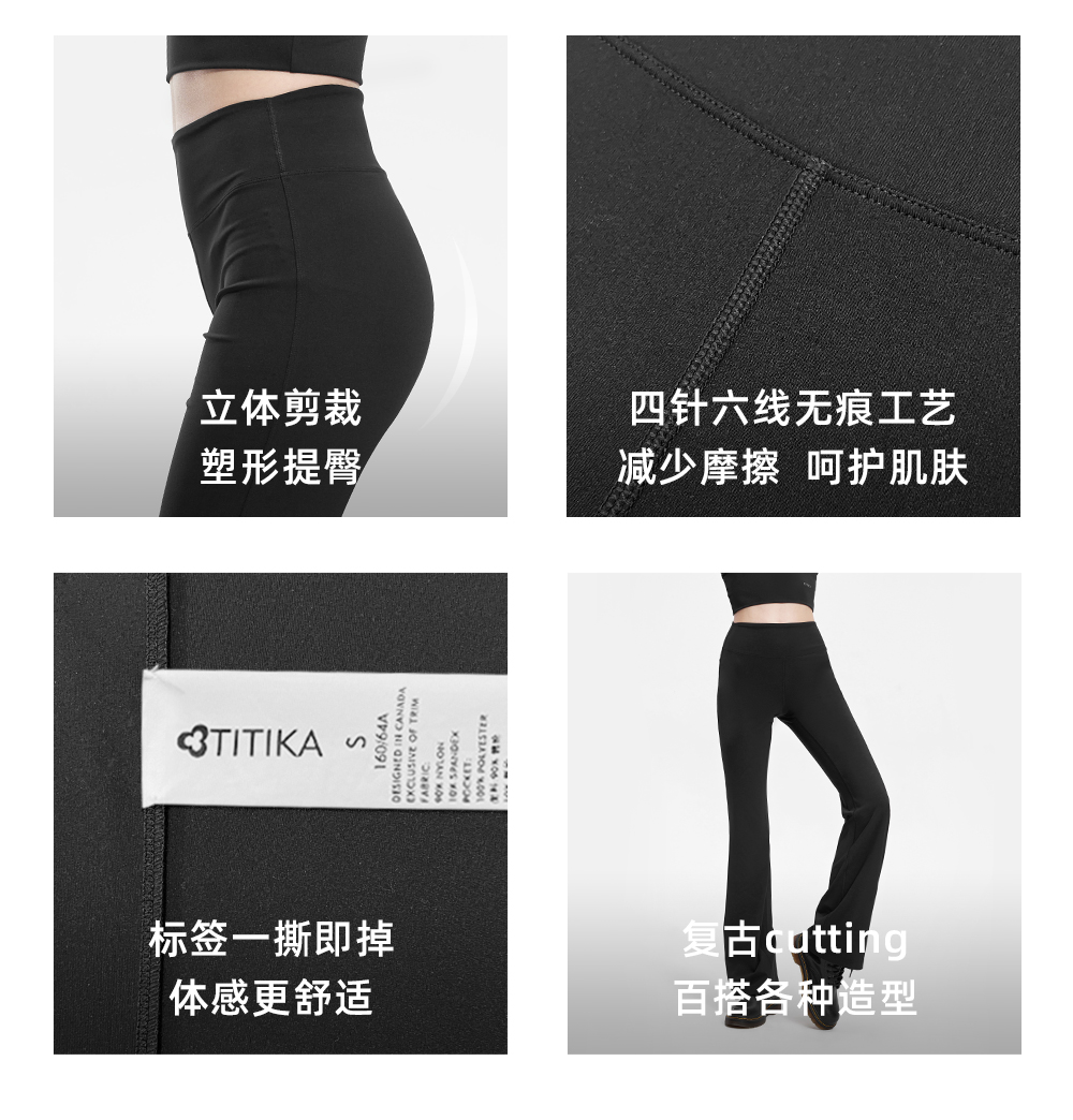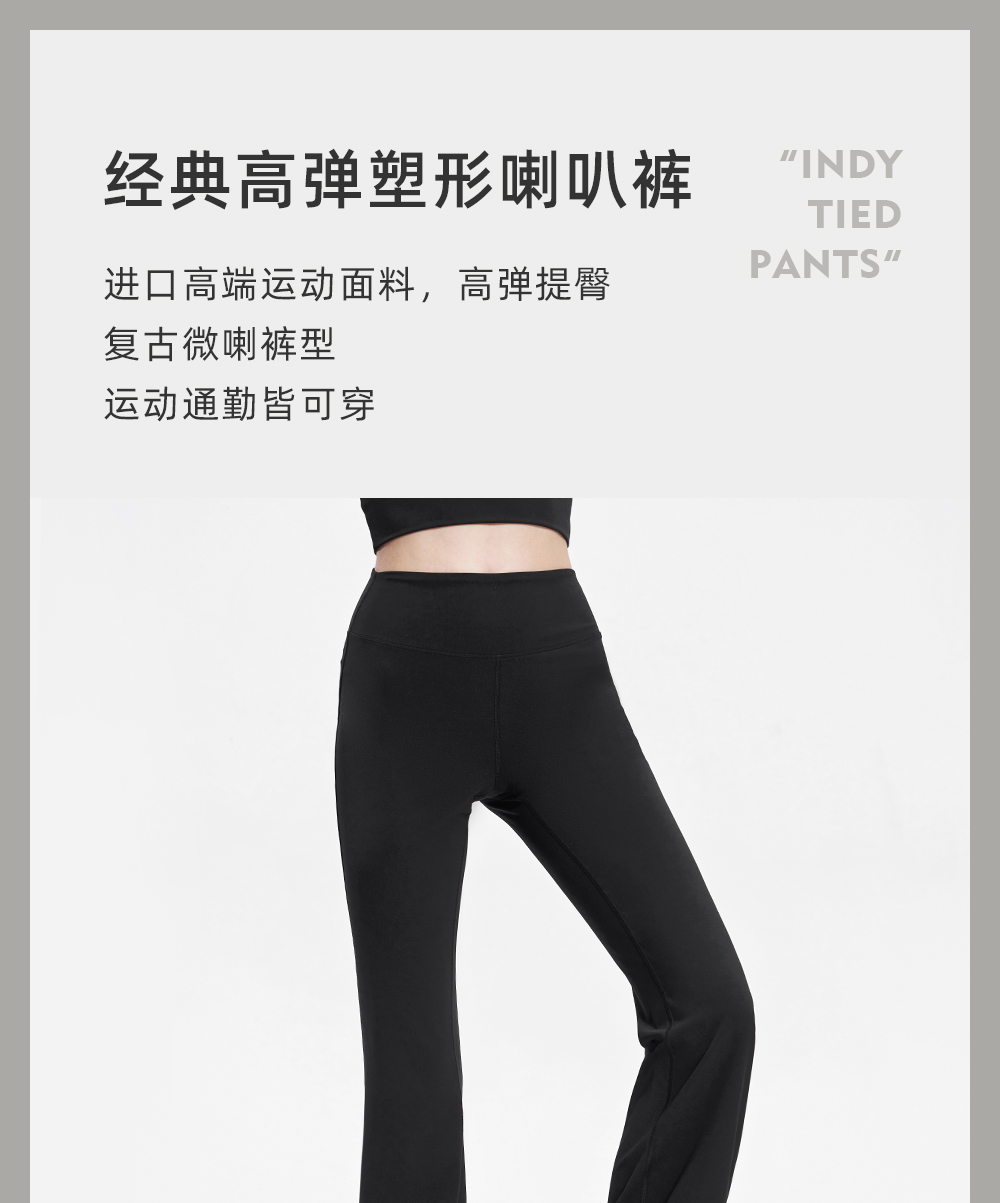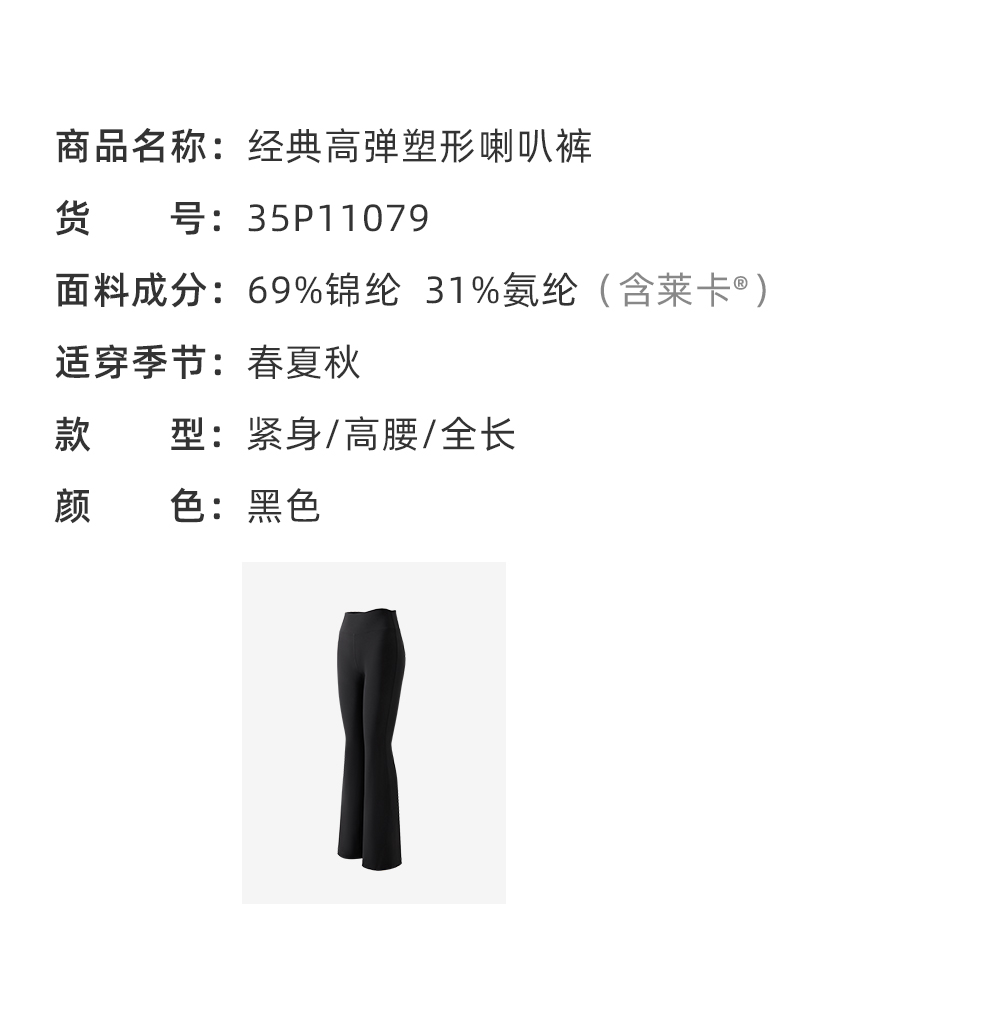 经典高弹塑形喇叭裤女复古高腰紧身运动通勤薄款黑色长裤11079
