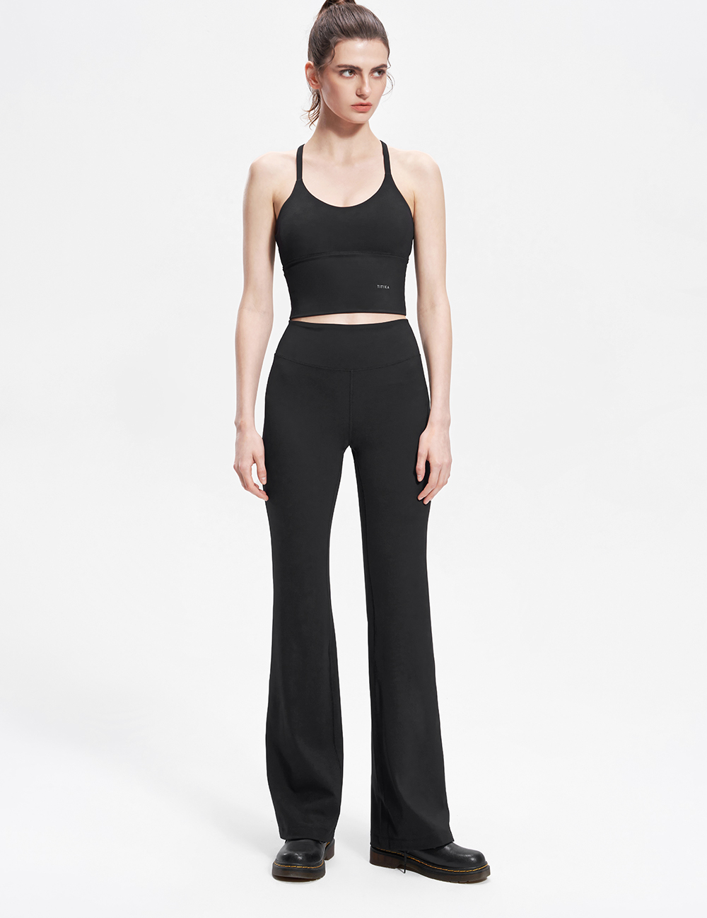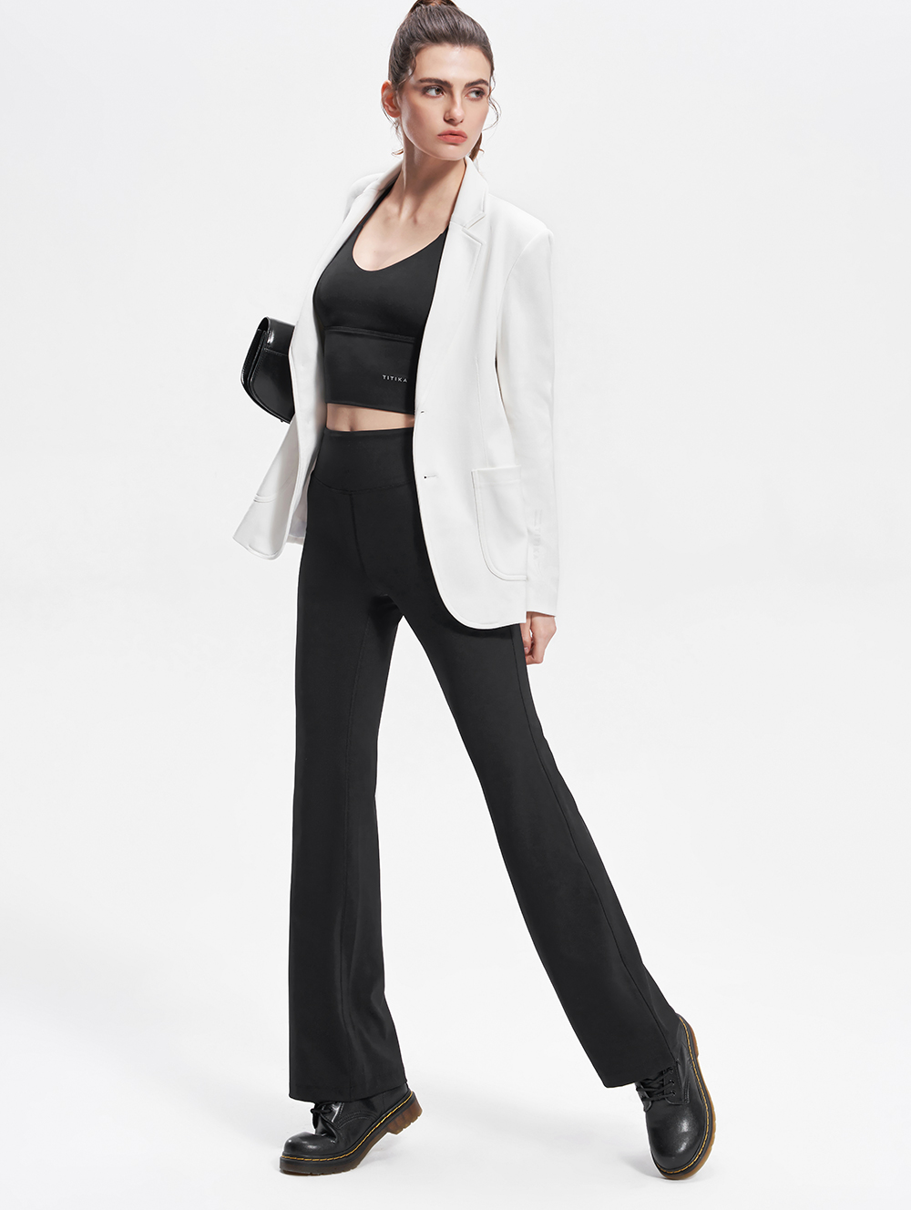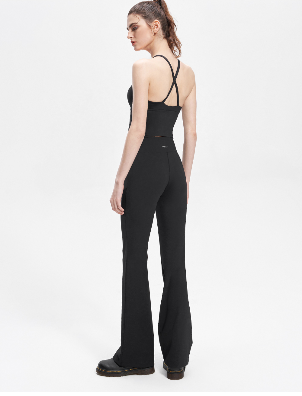 经典高弹塑形喇叭裤女复古高腰紧身运动通勤薄款黑色长裤11079