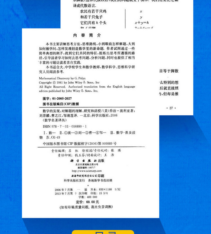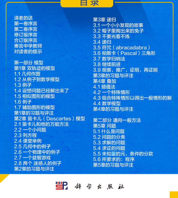 本书主要讲解思考方法,思维路线,小到眼前怎样解题,大到如何做学问,怎样发现创造数学里的新命题。作者试图通过一些简单典型的例子,找到它们共同的特征,提炼出思考所遵循的路径,引导读者学习如何去思考问题,分析问题,同时也提供了相当丰富的习题让读者亲自实践。