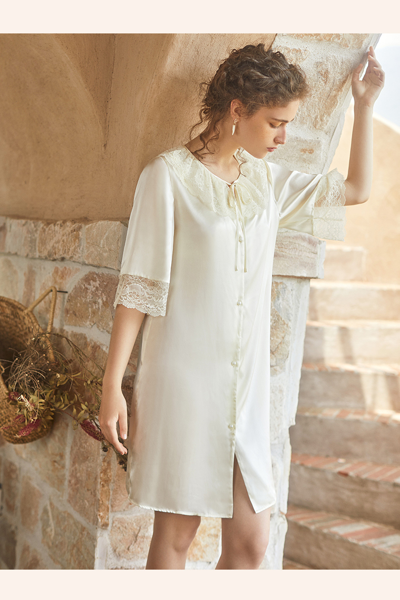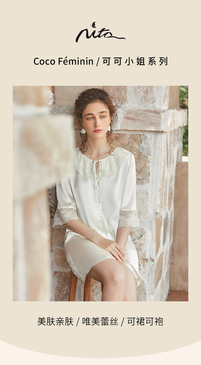 【裙/袍两穿】100%桑蚕丝法式睡裙/袍舒适时尚家居服 YSFBC199